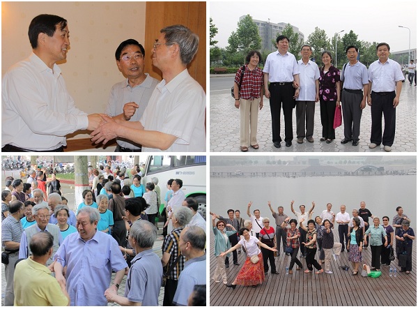 在老校區,校友們滿懷深情地參觀了學生宿舍樓、教學樓,并在第三餐廳就餐,重新體驗了大學生活。校友們與老教師“夕陽紅”合唱團舉行聯歡時,很多當年任教的老師也被接到現場,當劉四麟、申楚襄、過祥鰲、姜永嘉等老師走下汽車時,校友們馬上圍上去擁抱、合影,“老師”叫個不停,仿佛又回到了學生時代。