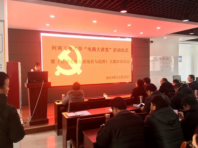 2018年12月29日,“電子商務大講堂”啟動儀式暨《縣域電商發(fā)展現(xiàn)狀與趨勢》主題培訓活動在光山啟動。光山縣縣委常委、常務副縣長黃曉赟介紹了光山縣電商發(fā)展政策、電子商務產業(yè)、電商教育培訓等基本情況。河南工業(yè)大學社科處處長于建華教授就“電商大講堂”的課程性質、培訓安排、培訓內容以及課程質量控制等情況進行了詳細介紹。啟動儀式由光山縣副縣長邱學明主持。管理學院電子商務系主任雷兵教授以《縣域電商發(fā)展現(xiàn)狀與趨勢》為主題對光山縣學員進行首期課程培訓,課程內容主要從政府、農戶、龍頭企業(yè)、電商企業(yè)和服務企業(yè)等因素講授了農產品上行的發(fā)展動力,并結合農產品電商大數(shù)據介紹了縣域電商發(fā)展中存在的問題和應對策略。培訓結束之后,“電商大講堂”的十位主講老師與光山縣電子企業(yè)代表、政府工作人員等進行座談,深入了解對方的知識需求,做到精準授課,精準幫扶。在此基礎上,學校先后安排多位老師圍繞《縣域電商發(fā)展現(xiàn)狀與趨勢》、《產品詳情頁視覺提升》、《農產品電商運營管理》、《淘寶網推廣技巧》、《社會化媒體營銷》、《網店客戶管理實用技術》、《服裝類網銷產品質量控制》以及《跨境電商發(fā)展現(xiàn)狀與趨勢》等主題開展了專題講座,授課內容涵蓋了縣域電商政策、電商模式及運行技巧等各個方面,較好地為電子商務知識較為缺乏的光山縣企業(yè)、農民以及公務員等群體提供了智力幫扶。每位主講教師正式授課前,電商扶貧工作組都會對講授內容進行質量把關,確保授課質量。先后有近2000名學員參與了培訓并從中獲益,有力地推動了光山縣電子商務產業(yè)的快速發(fā)展。