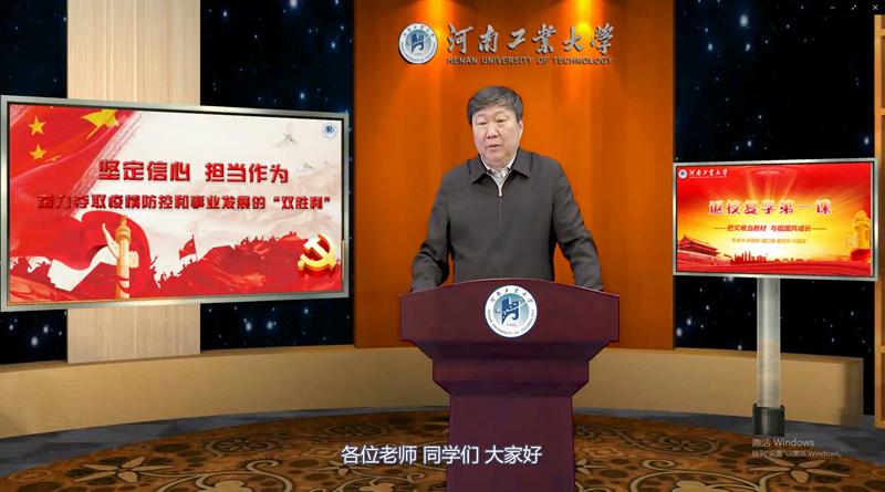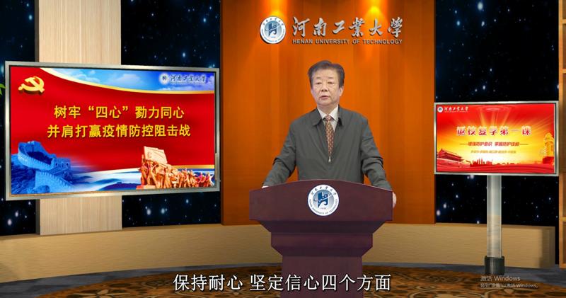 校長卞科圍繞學校整體工作、學生管理等對學校復學后的工作進行了安排部署。他指出,黨的初心使命,是我們抗擊疫情戰勝一切艱難險阻的不竭動力;中國的責任擔當,是我們抗擊疫情戰勝一切艱難險阻的堅強保證;民族的精神文化,是我們抗擊疫情戰勝一切艱難險阻的根本力量。他要求,廣大青年學生一要做戰“疫”精神的虔誠繼承者、弘揚者,堅定理想信念,找準奮斗目標,與時代同進步、與祖國共成長;二要做“四個自信”的忠實擁護者、踐行者,不為任何風險所懼,不為任何干擾所惑,堅定不移開辟新天地、創造新奇跡;三要做國家形象的堅定維護者、捍衛者,珍惜來之不易的國家繁榮、民族團結、社會穩定、經濟發展的大好局面、幸福生活,切實維護好國家形象和聲譽;四要做民族復興的積極參與者、貢獻者,從抗擊疫情中汲取精神力量,把個人理想與國家發展、民族命運結合起來,在實現中華民族偉大復興征程中,綻放青春異彩。他強調,在返校復學后,廣大師生一要保持戰時狀態,一切行動聽指揮;二要樹立底線思維,嚴格落實硬措施;三要把災難當教材,齊心協力共成長。