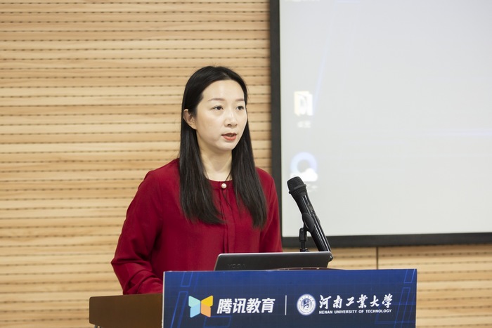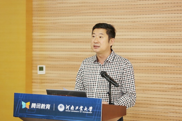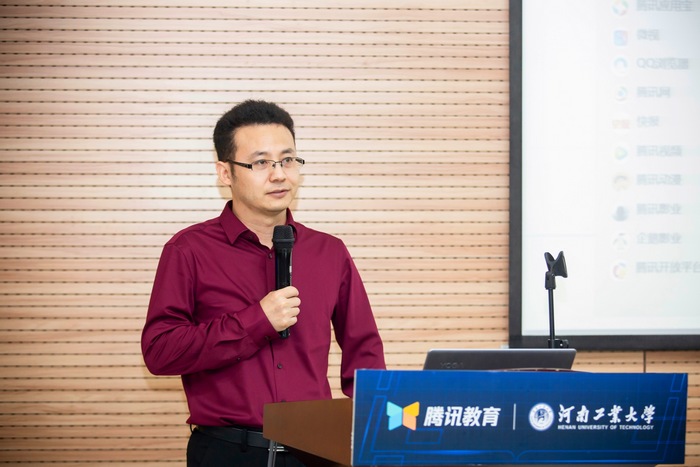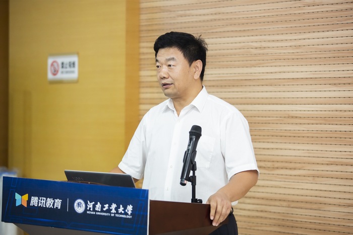 李煥鋒致歡迎辭,他介紹了我校基本校情及信息化建設概況,闡述了教育信息化的重要意義,并對未來信息化在教育教學各領域發揮更大作用提出了希冀。鄭州大學信息化辦公室(網絡管理中心)李占波主任代表與會高校致辭。查力代表騰訊致辭。