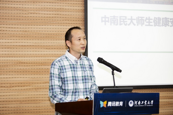 在主題分享環節,中南民族大學現代教育技術中心副主任張淼做了題為《中南民大師生健康安全綜合管理平臺建設的探索與思考》的報告,總結了利用信息化手段應對疫情促進管理的經驗做法。我校信息化管理中心主任張強做了題為《科技引領 繪就藍圖 推進智慧校園建設高質量發展》的報告,介紹了我校信息化建設情況和發展思路。中原工學院信息化辦公室主任張書欽以《智慧校園移動服務門戶建設》為題分享了學校移動門戶建設的實踐探索。鄭州科技學院管理信息中心主任李振峰以《教育信息化從入門到放棄》為題分享了他對學校信息化的深度思考。騰訊教育總架構師劉衛昌以《騰訊在高校信息化領域的探索和思考》為題進行了分享。