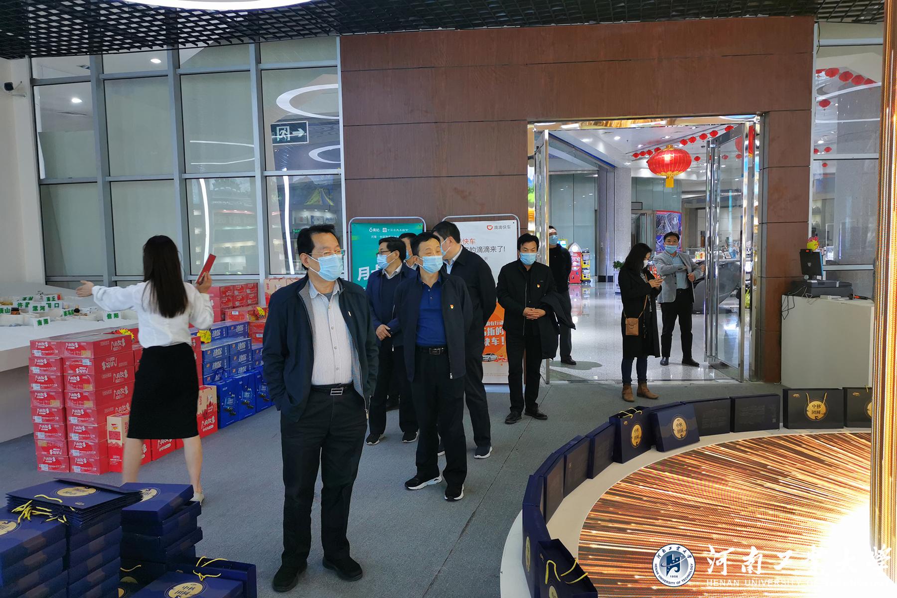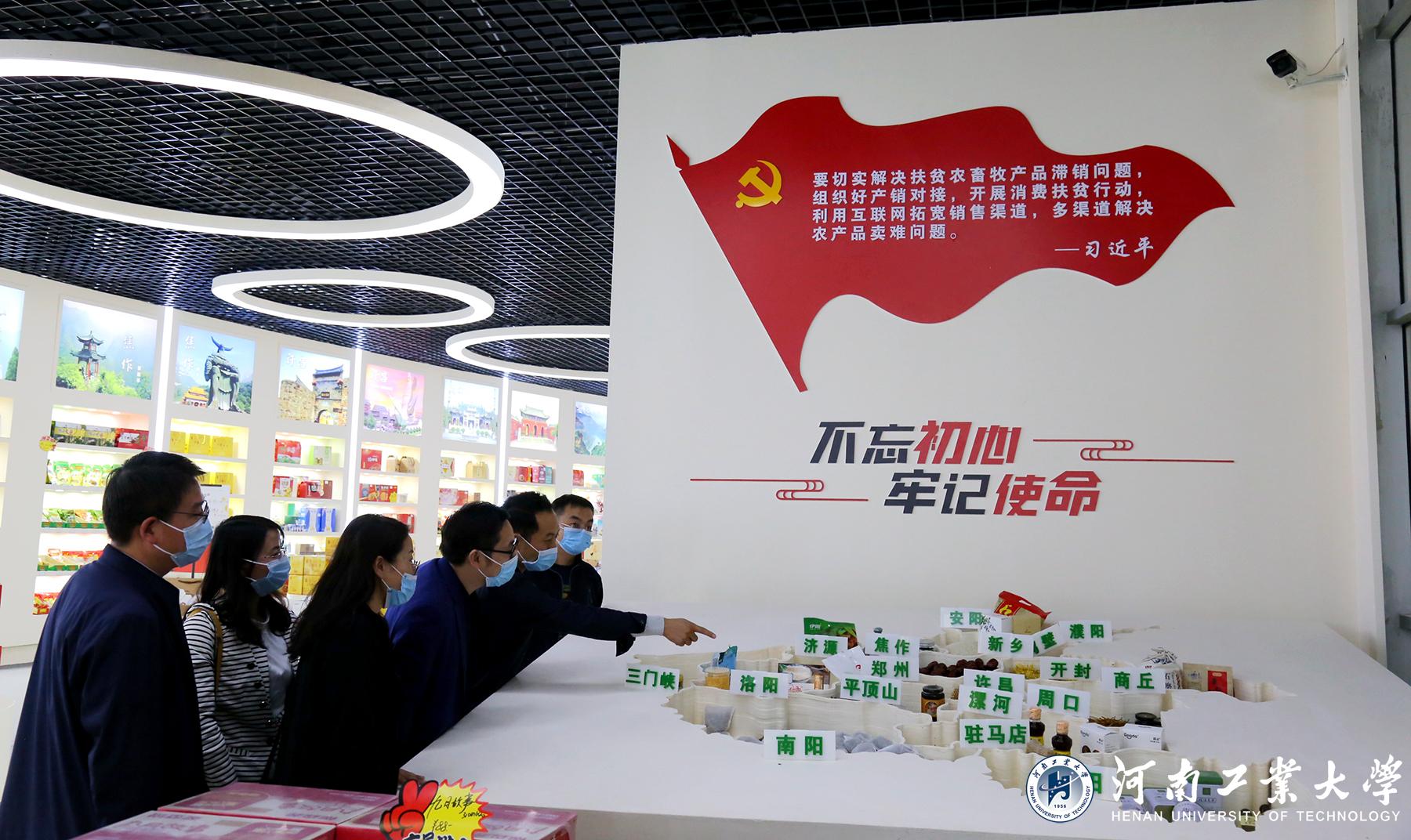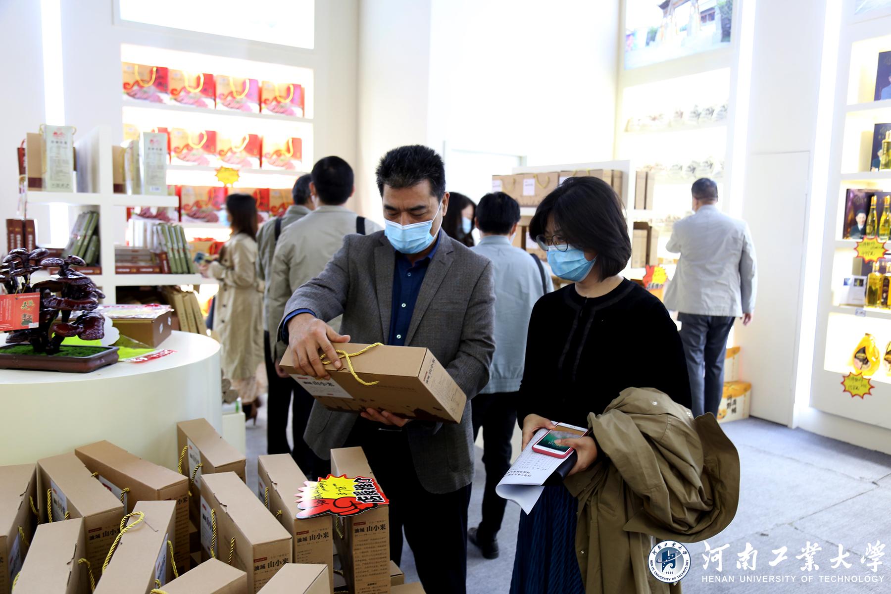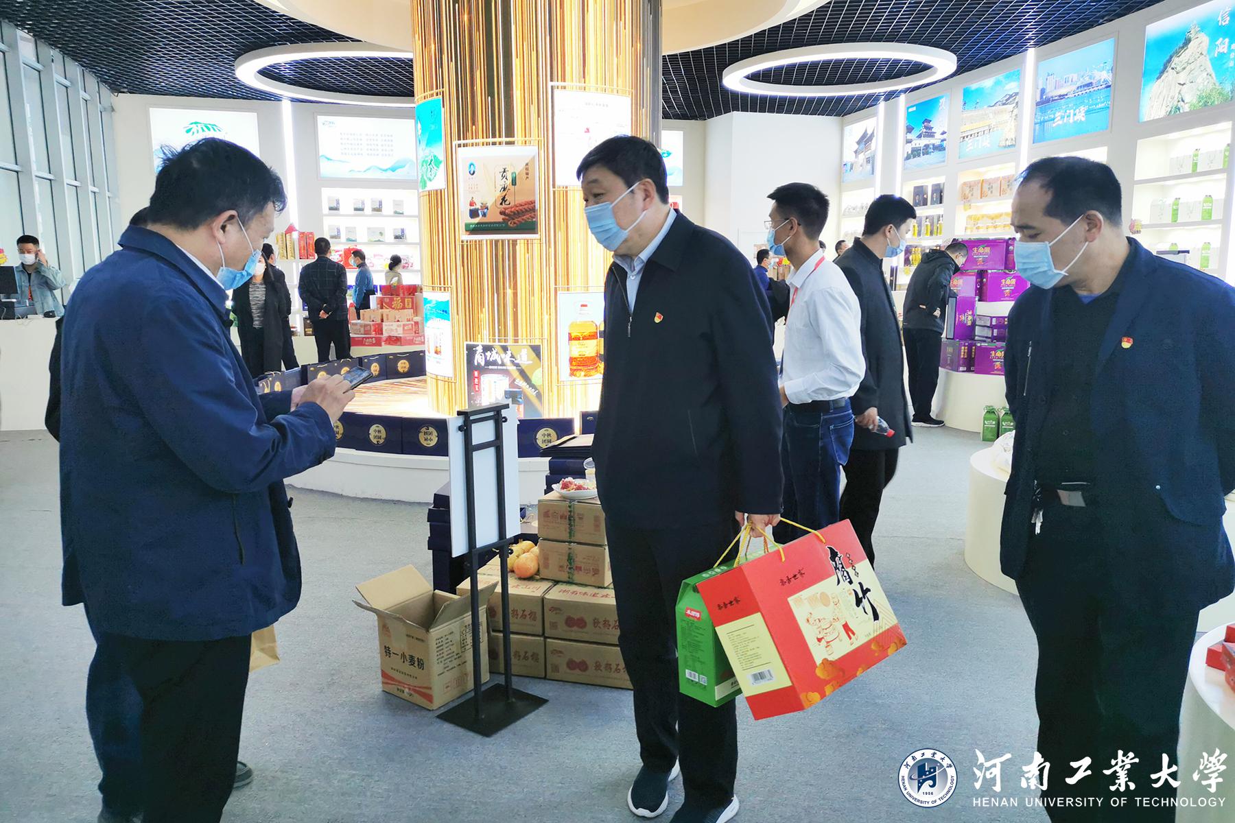 在位于中原福塔二樓的消費扶貧生活館展銷廳內,具有河南各地特色消費扶貧產品琳瑯滿目,聽取講解人員的介紹后,黨委書記張元、校長卞科帶頭購買了特色農副產品。