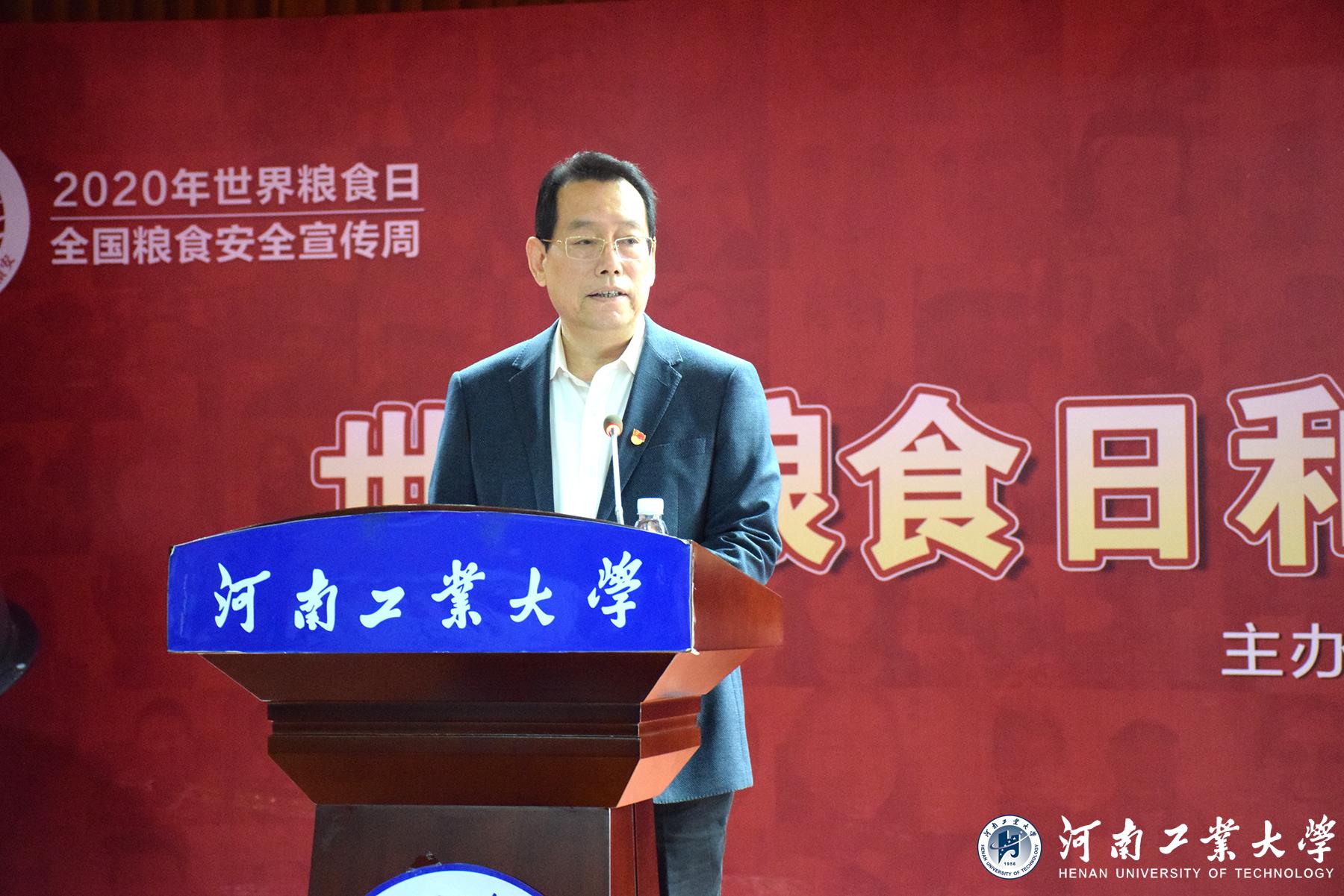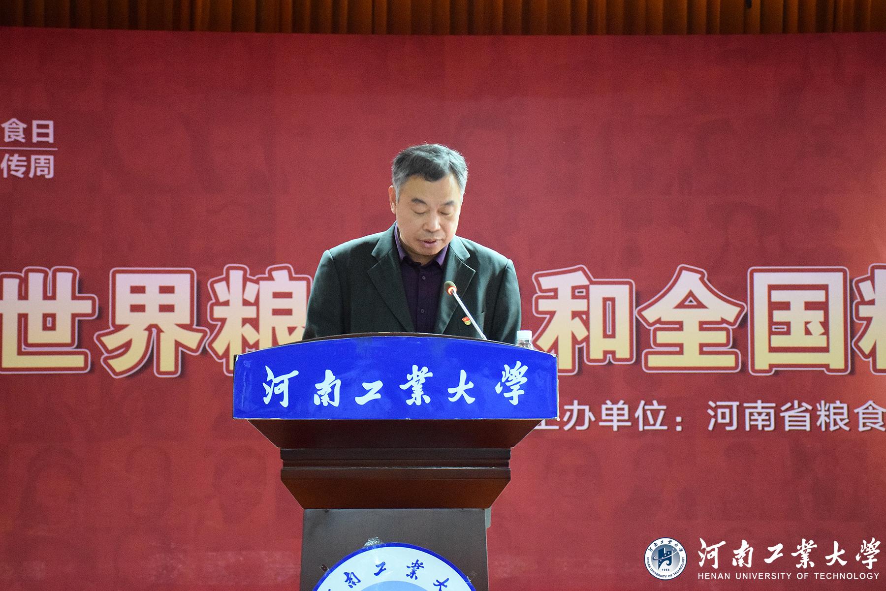 卞科發表講話,他指出,糧食事關國運民生,今年疫情的緣故讓糧食安全問題受到了前所未有的關注。國際糧食供應十分緊張,世界糧食安全不容樂觀!與此形成鮮明對比的是,我國糧食安全有著絕對的保障。可以說我們端牢了“中國飯碗”,盛的都是“中國糧食”!但是我們糧食安全潛在風險仍然存在,糧食安全這根弦,任何時候都不能放松。我們要牢記習近平總書記的囑托,扛穩我國糧食安全重任,建設糧食生產強國,積極承擔國際義務積極參與世界糧食安全治理,讓中國糧食走出去,為全球老百姓的吃飯問題做出中國貢獻。河南工業大學因“糧”而立,為“糧”而育,在引領糧食行業科技進步、保障國家糧食安全方面做出了糧食人應有的貢獻。