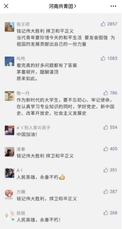 為深入貫徹落實習近平總書記在全國高校思想政治工作會議上的重要講話精神,堅持把立德樹人作為中心環節,把思想政治工作貫穿教育教學全過程。近日,我校承辦的“銘記偉大勝利,捍衛和平正義”河南共青團示范團課,通過“河南共青團”微信公眾號發布,在青少年學生中引起了熱烈反響,學習量達94萬,超出第二名13萬。截止發稿,示范團課的學習量仍在持續攀升。