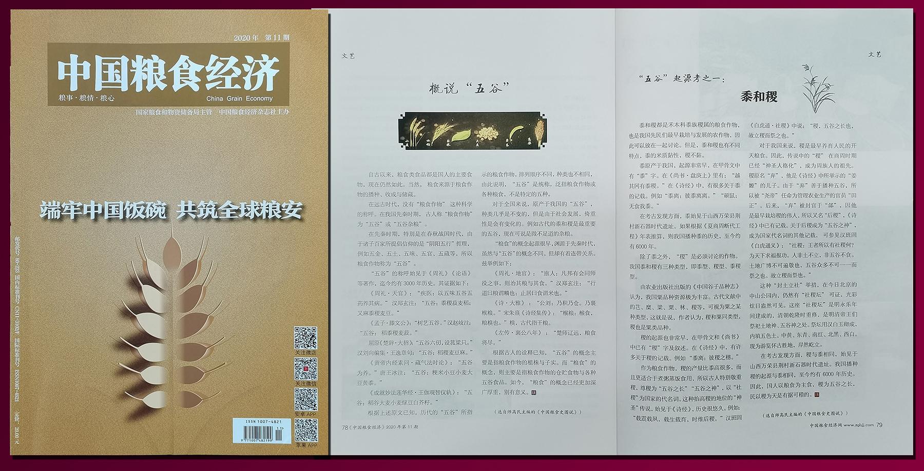 《中國糧食經濟》2020年第11期轉載《中國糧食史圖說》