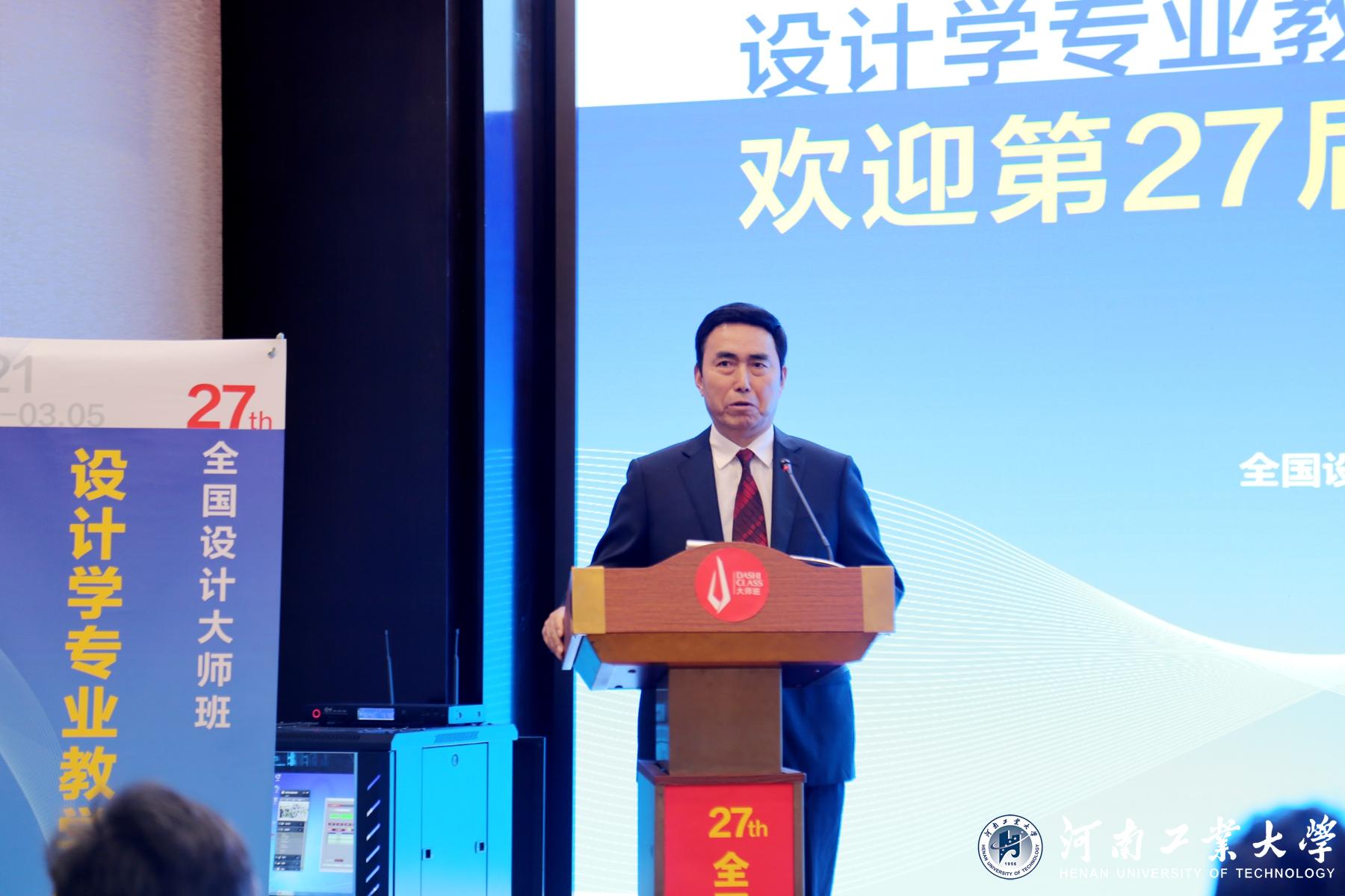 全國設(shè)計(jì)大師班創(chuàng)辦人、教育部高等學(xué)校設(shè)計(jì)學(xué)類專業(yè)教學(xué)指導(dǎo)委員會(huì)副主任、同濟(jì)大學(xué)博士生導(dǎo)師林家陽教授,河南工業(yè)大學(xué)人事處處長、教師發(fā)展中心主任曹利強(qiáng)教授,教育部職業(yè)院校藝術(shù)設(shè)計(jì)教指委前副主任、國家級(jí)教學(xué)名師彭亮教授,河南省教育廳河南省學(xué)校藝術(shù)教育協(xié)會(huì)會(huì)長石品教授等參加大師班開幕式并致辭。