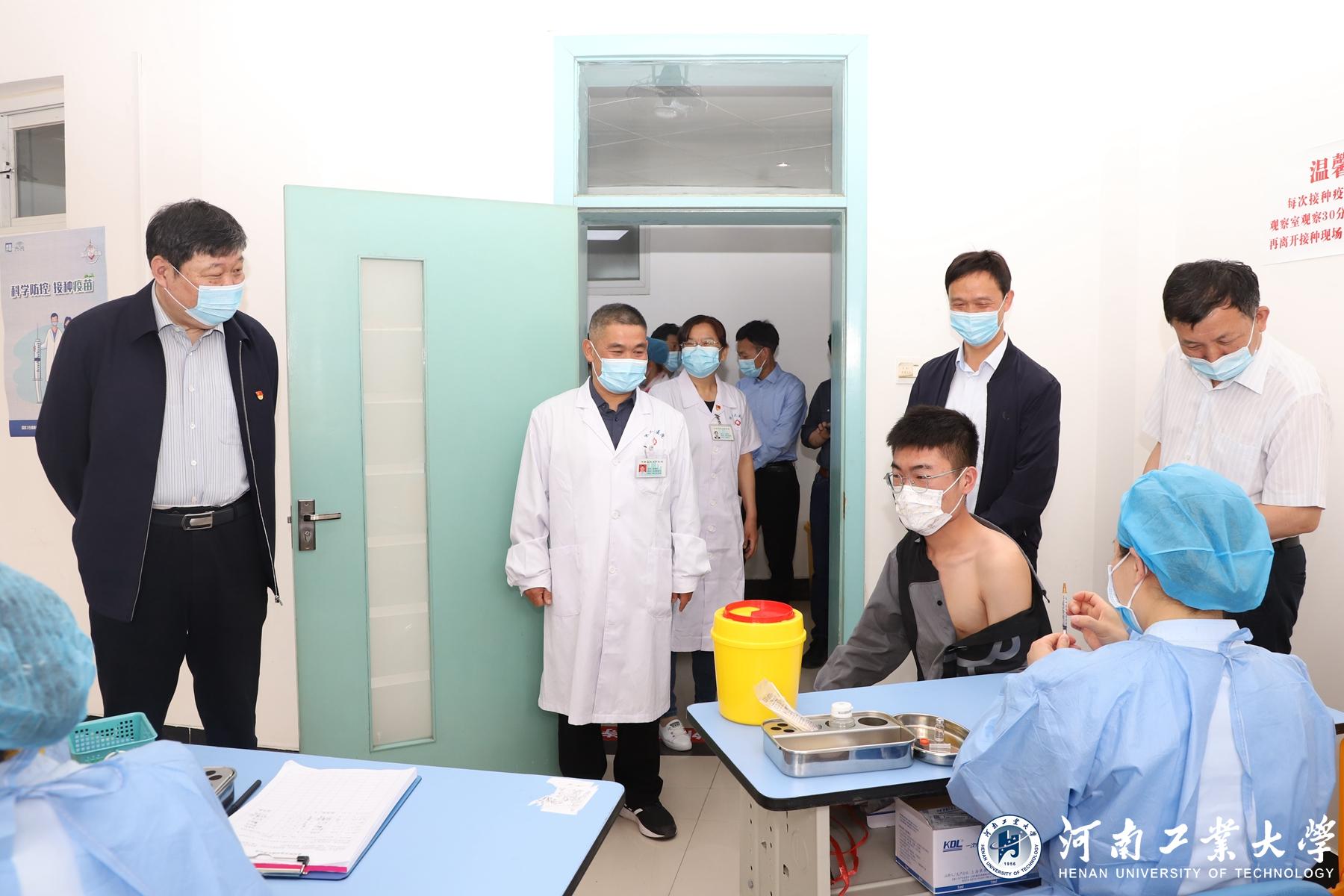 為積極推進全校新冠疫苗免疫接種工作,切實構筑免疫屏障,5月6日,校領導張元、李成偉、李煥鋒在黨辦、校辦、學生處負責同志陪同下,到校醫院新冠疫苗集中接種點檢查指導疫苗接種工作,看望和慰問接種疫苗的學生和工作人員。
