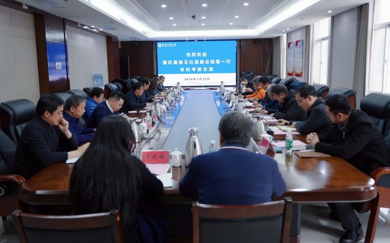 2024年2月29日,國機(jī)重型裝備集團(tuán)股份有限公司黨委委員、副總經(jīng)理、總工程師王社昌一行7人到我校就深入開展校企合作,共同推進(jìn)糧機(jī)裝備產(chǎn)業(yè)轉(zhuǎn)型升級進(jìn)行座談交流。學(xué)校黨委書記劉志軍、校長吳智深在座談會前會見了王社昌一行。副校長牛進(jìn)平、原校長卞科、原校黨委副書記李學(xué)雷出席座談交流會,產(chǎn)業(yè)技術(shù)研究院、糧食創(chuàng)新發(fā)展中心(中國糧食博物館)、機(jī)電工程學(xué)院、社會合作辦公室、資產(chǎn)經(jīng)營公司、河南工大設(shè)計研究院相關(guān)單位負(fù)責(zé)同志和專家以及中國機(jī)械工業(yè)國際合作有限公司、鄭州糧谷實業(yè)有限公司等企業(yè)代表參加座談會。座談會由牛進(jìn)平主持。