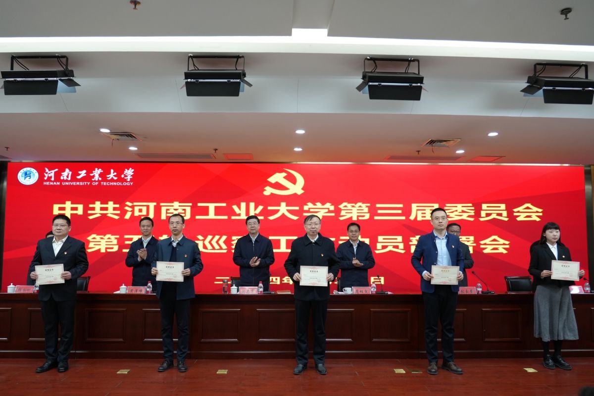 會上,周相寅宣讀了《中共河南工業大學第三屆委員會第五輪巡察工作方案》和《關于第五輪巡察巡察組授權任職及任務分工的決定》。劉志軍向巡察組組長頒發了《授權書》。黃澤峰宣讀了《關于表彰第四輪巡察優秀巡察干部的決定》,巡察工作領導小組向優秀巡察干部頒發了榮譽證書。