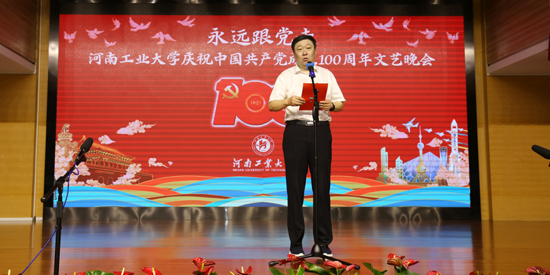 校黨委書記張元致辭,他指出,在黨的百年華誕到來之際,學校通過文藝晚會的形式謳歌黨的豐功偉績,目的是讓廣大師生進一步堅定信念跟黨走,進一步堅信沒有共產黨就沒有新中國。他表示,在黨的光輝照耀下,學校走過了65年不平凡的歷程,也取得了值得廣大師生、校友驕傲的成績。當前,立足百年大黨新起點、置身百年未有大變局、接力百年奮斗新征程,學校將牢記為黨育人為國育才使命,繼續在建設有特色高水平工業大學的道路上開新局、譜新篇。同時也希望廣大青年學生堅定理想信念,立大志、明大德、成大才、擔大任,努力成為堪當中華民族偉大復興重任的時代新人。