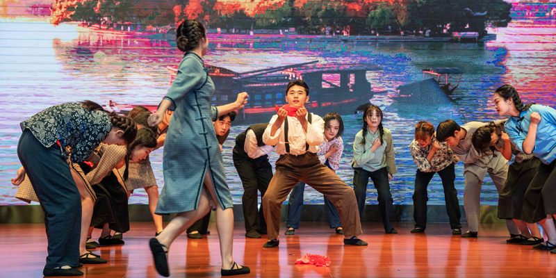 一支《紅船》舞,展現了中國共產黨從最初嘉興南湖一條不大的畫舫,承載著歷史和人民的希冀,越過險灘和激流,最終成長為一艘領航中國的巍巍巨輪的光輝歷程。
