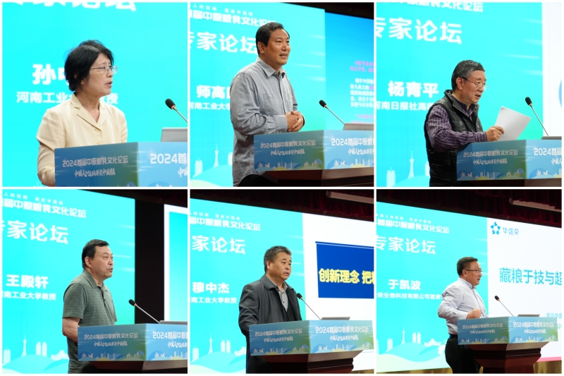 專家論壇環(huán)節(jié),來自校河南工業(yè)大學的孫中葉教授、師高民教授、王殿軒教授、穆中杰教授分別做了題目為《國人飯碗河南糧的情懷與責任》《中國飯碗縱橫談》《我國糧食儲藏技術發(fā)展與糧食文化進步》和《糧食法律法規(guī)與糧食節(jié)約文化》的專題報告,來自河南日報社的楊青平教授和青島華盛榮生物科技有限公司的于凱波教授分別做了題目為《糧食儲備文化與太平盛世》《藏糧于技與超敏蛋白復合酶應用》的精彩分享。與會專家圍繞中國飯碗、糧食文化、糧食法律法規(guī)、糧食科技等主題向與會人員做了精彩的成果分析,專家們的論壇使與會人員對我國的糧食安全與糧食文化有了更深的認識與思考。