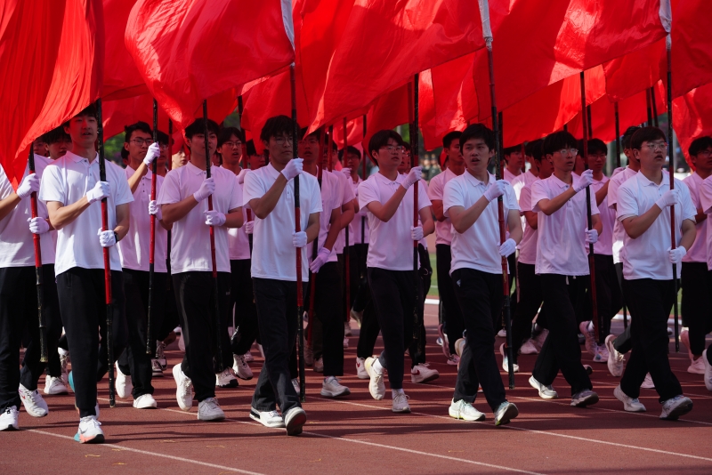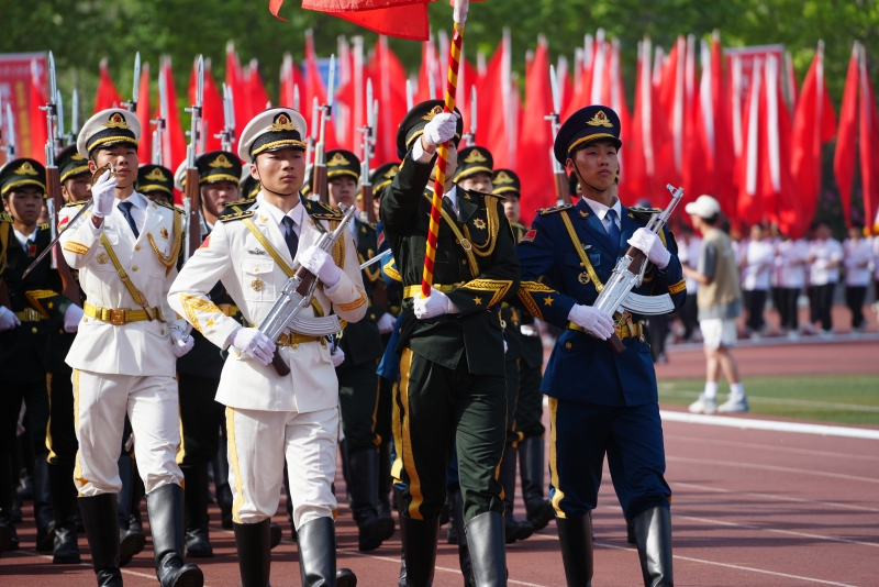 伴隨著《運動員進行曲》激情昂揚的旋律,運動會儀仗隊、花束隊、彩旗隊,各學院代表隊依次入場。隨后,開幕式在莊嚴的升旗儀式中正式拉開帷幕。