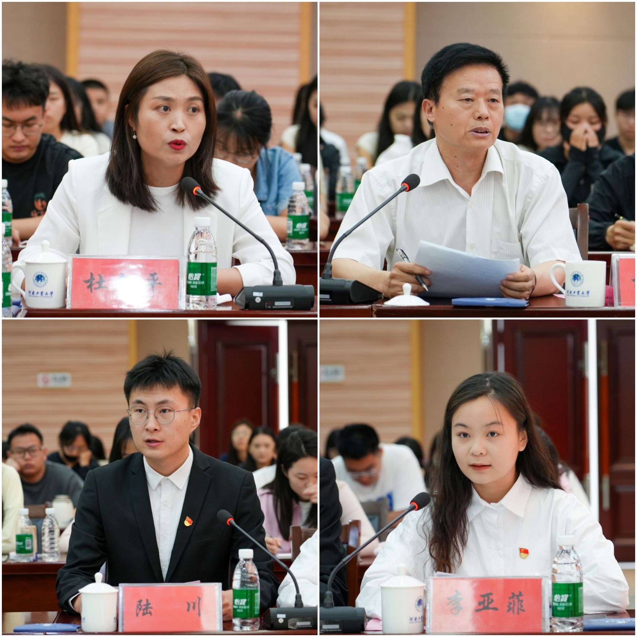 會上,黨委學生工作部部長王良,教務處處長楊六栓,馬克思主義學院院長蔣篤君,馬克思主義學院教師楊衛軍、杜文平,糧油食品學院本科生李亞菲和環境工程學院研究生陸川分別圍繞學習貫徹習近平總書記對學校思政課建設作出的重要指示精神,結合崗位職責、工作學習情況作交流發言。