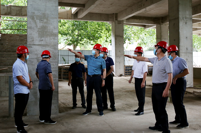 8月21日上午,校黨委書記劉志軍、副校長李煥鋒在黨辦、基建處等部門負責同志陪同下,深入蓮花街校區三個施工工地視察工程建設情況。