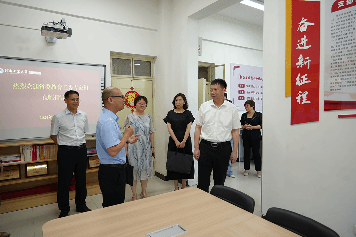 專家組組長楊新宇介紹了本次驗收考核的背景、意義、驗收方式和工作要求,隨后實地考察了機關黨委學工團委黨支部、管理學院電子商務系教工黨支部、經濟貿易學院國際貿易系“雙帶頭人”教師黨支部書記工作室等單位的黨建活動陣地,查閱驗收考核單位有關支撐資料,深入了解創建工作的具體做法和取得的成效。專家組對學校在黨建示范創建和質量創優、全省高校黨建工作強基引領“三級聯創”等方面取得的成效給予充分肯定,并提出了寶貴的指導意見。