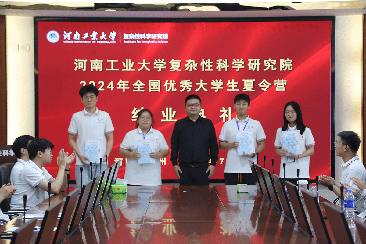 7月8日至9日,來自復雜性科學研究院的20位科研教師圍繞多個前沿主題,為同學們帶來了精彩紛呈的學術報告,深入探討了人工智能與傳統中醫的融合路徑等熱點問題。同學們則結合自己的專業背景,積極分析、討論可參與的研究項目,并就研究方向、科研方法以及招生政策等問題與老師們進行了深入的交流。結業典禮上,未病數學建模人工智能研究所所長呂磊宣讀了《關于授予河南工業大學復雜性科學研究院2024年全國優秀大學生夏令營結業證書和表彰優秀營員的決定》,李鵬教授向優秀營員頒發榮譽證書,對他們在夏令營期間的優秀表現給予了充分的肯定并表示祝賀。至此,河南工業大學復雜性科學研究院2024年全國優秀大學生夏令營圓滿結束。