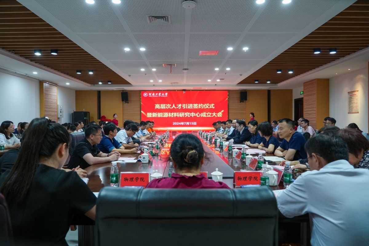 7月15日,河南工業大學高層次人才引進簽約儀式暨新能源材料研究中心成立大會在蓮花街校區D204會議室隆重舉辦。參加大會的有高層次人才趙新為教授,山東大學熊勝林教授,廈門大學張橋保教授,濟南大學周偉家教授,河南大學白瑩教授及來自企業的代表。校長吳智深,副校長白艷紅、鄧淼磊,黨委組織部、校長辦公室、發展規劃處、人事處、教務處、科技處、研究生院、學科建設辦公室等相關職能部門負責同志,以及物理學院全體教師、研究生等出席會議。會議由副校長白艷紅主持。
