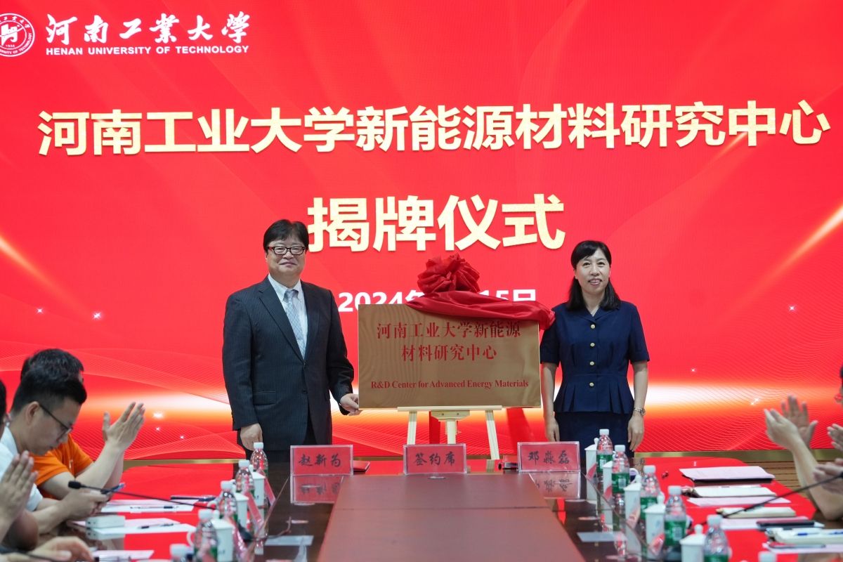 白艷紅和趙新為一起為“河南工業大學新能源材料研究中心”揭牌