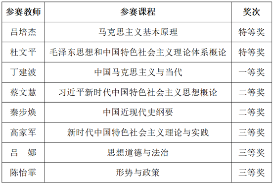 近日,由中共河南省委宣傳部、中共河南省委教育工委、河南省教育廳主辦的2024年度全省學校思想政治理論課教學技能“大比武”評審結果揭曉,馬克思主義學院8名教師參賽,獲特等獎2項,一等獎1項,二等獎2項,三等獎3項。