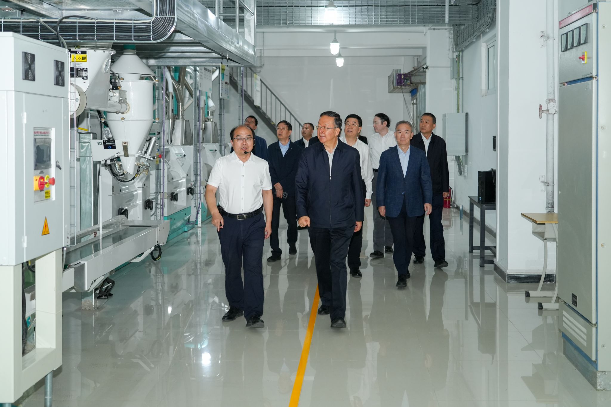 田學軍、古小玉一行先后調研了小麥和玉米深加工國家工程研究中心、糧油食品教研中試中心、儲藏物昆蟲標本館和糧機高端裝備創新中心。