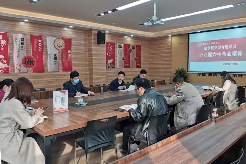 11月15日,法學院黨委專題學習十九屆六中全會精神,學院黨委全體成員參加,黨委書記陳從志主持。