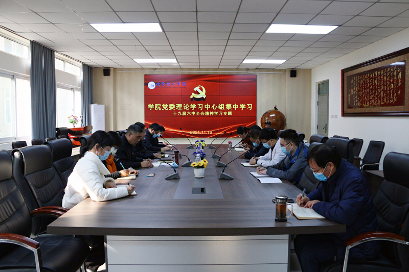 11月17日上午,學校在辦公樓A515會議室召開會議,集中學習黨的十九屆六中全會精神。校黨委常委、校領導,相關部門主要負責人參加了學習。會議由校黨委書記劉志軍主持。