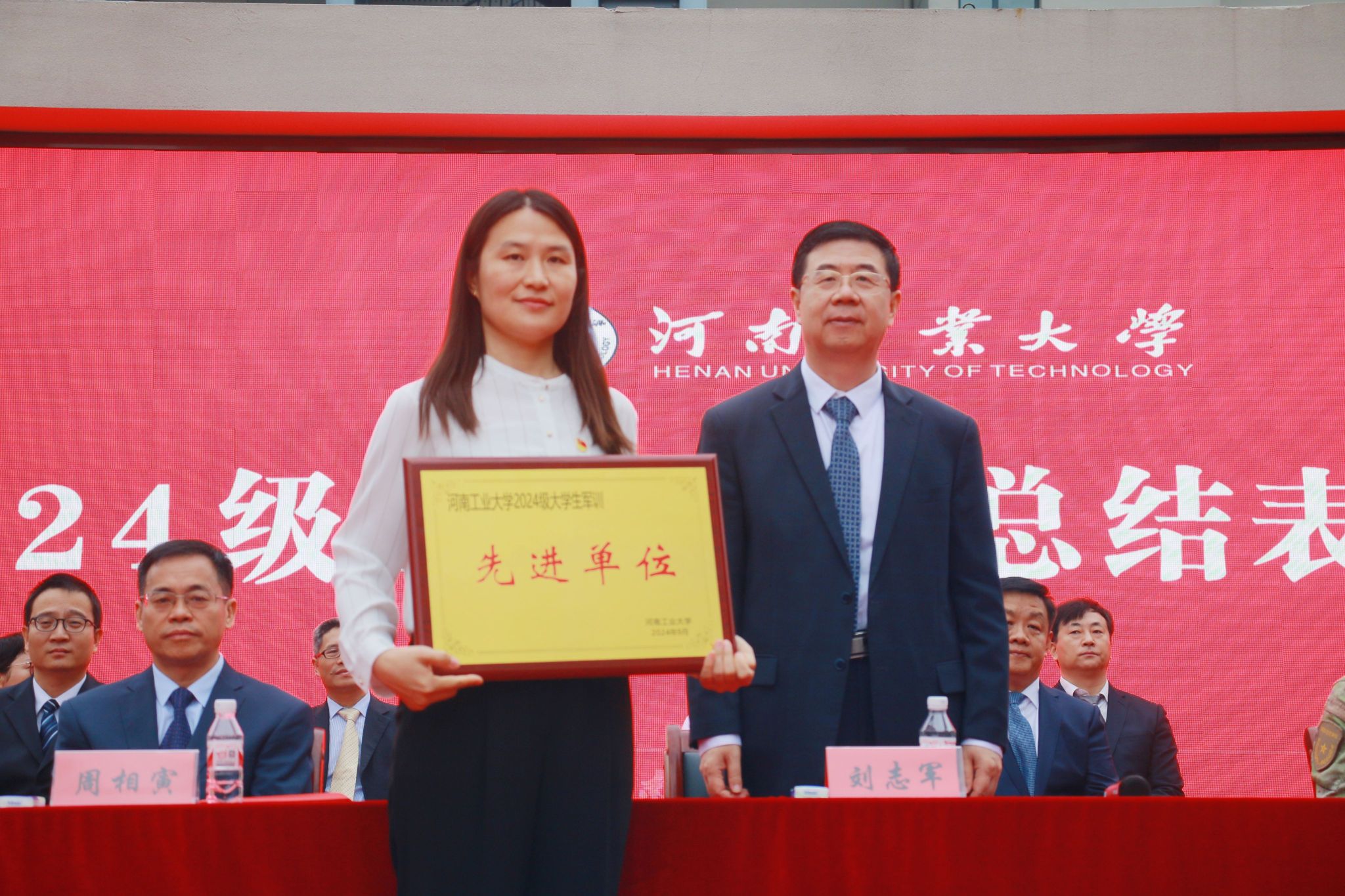 校黨委書記劉志軍為軍訓先進單位頒獎