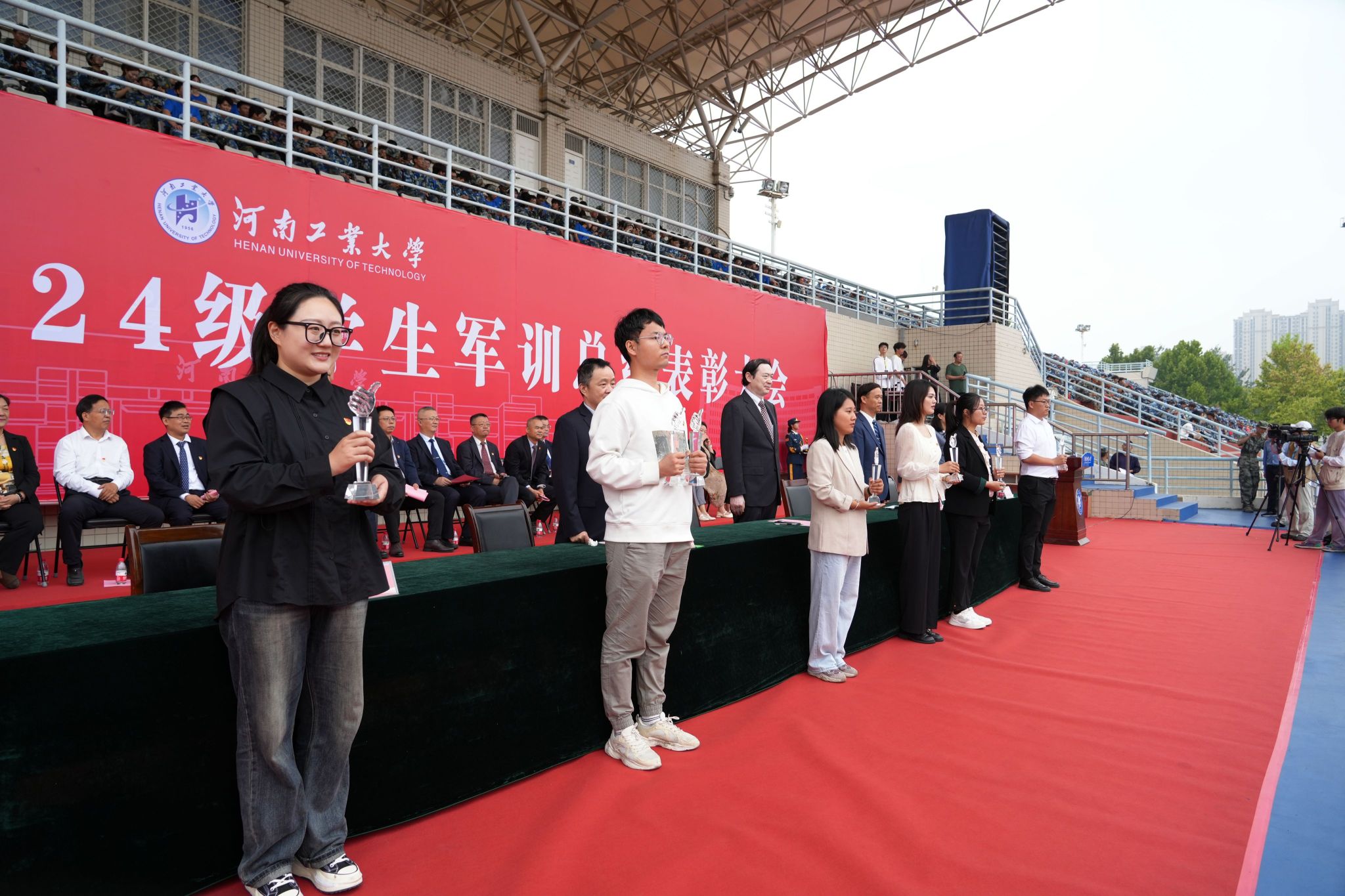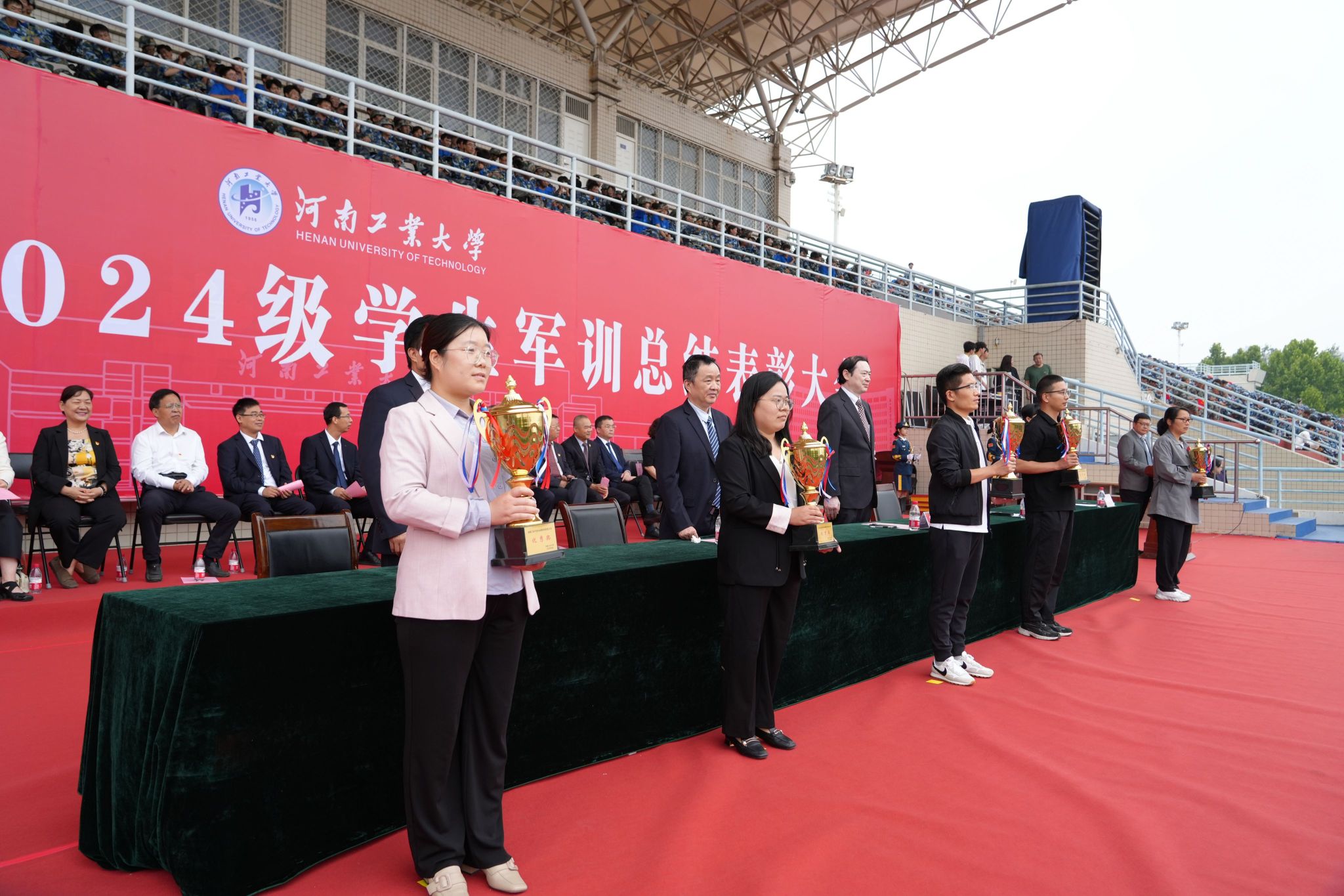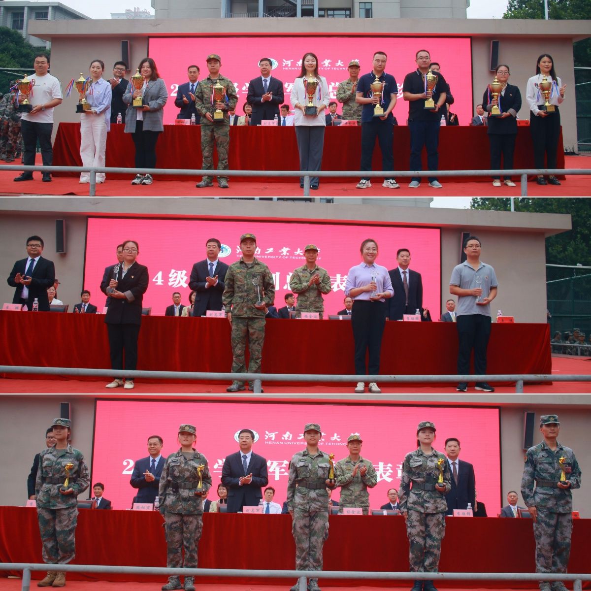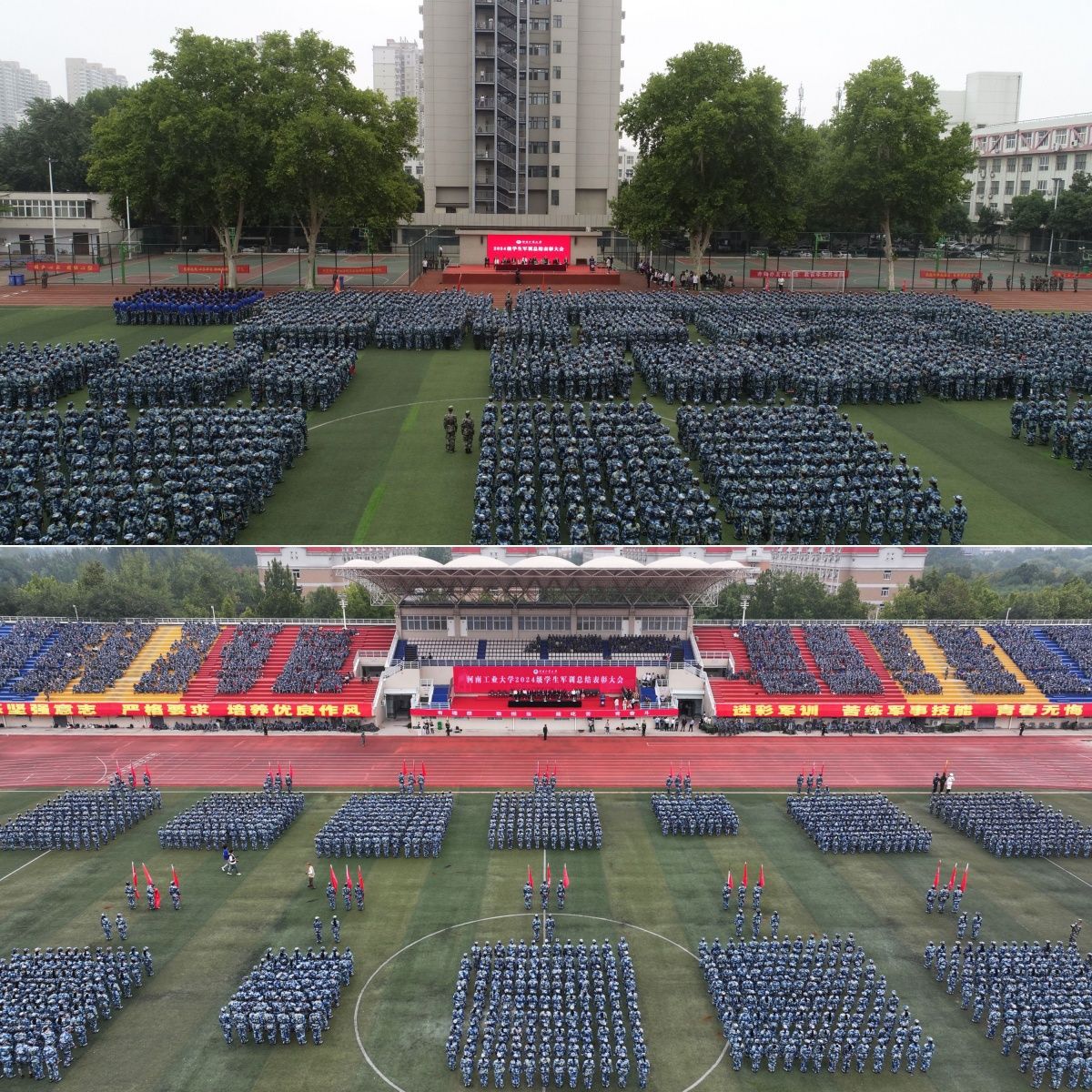 軍訓鑄魂展青春,砥礪奮進譜華章。9月29日上午,我校2024級學生軍訓總結表彰大會分別在嵩山路校區和蓮花街校區隆重舉行。全體校領導、中原區人民武裝部部長楊金波出席表彰大會,各職能部門、各學院(書院)主要負責同志、2024級新生輔導員和班主任代表、軍訓教官、全體2024級新生參加總結表彰大會。學工部部長、武裝部部長王迪和校團委書記高泉分別主持表彰大會。