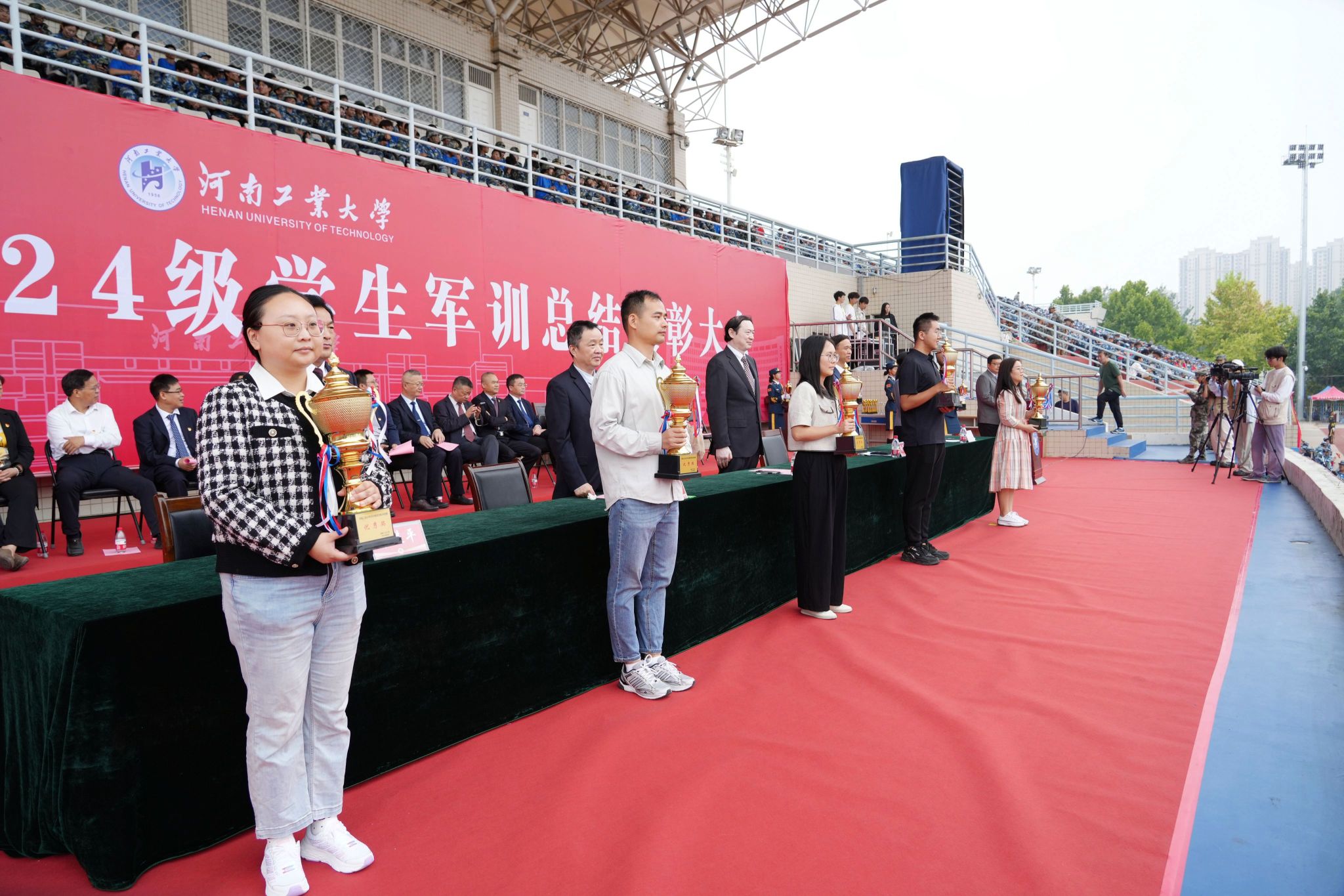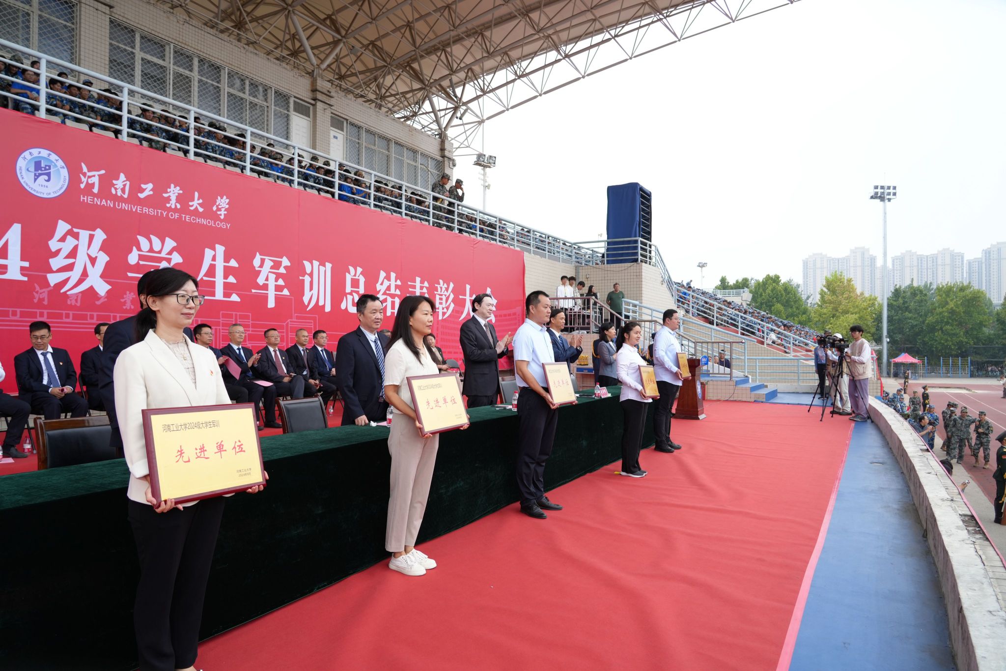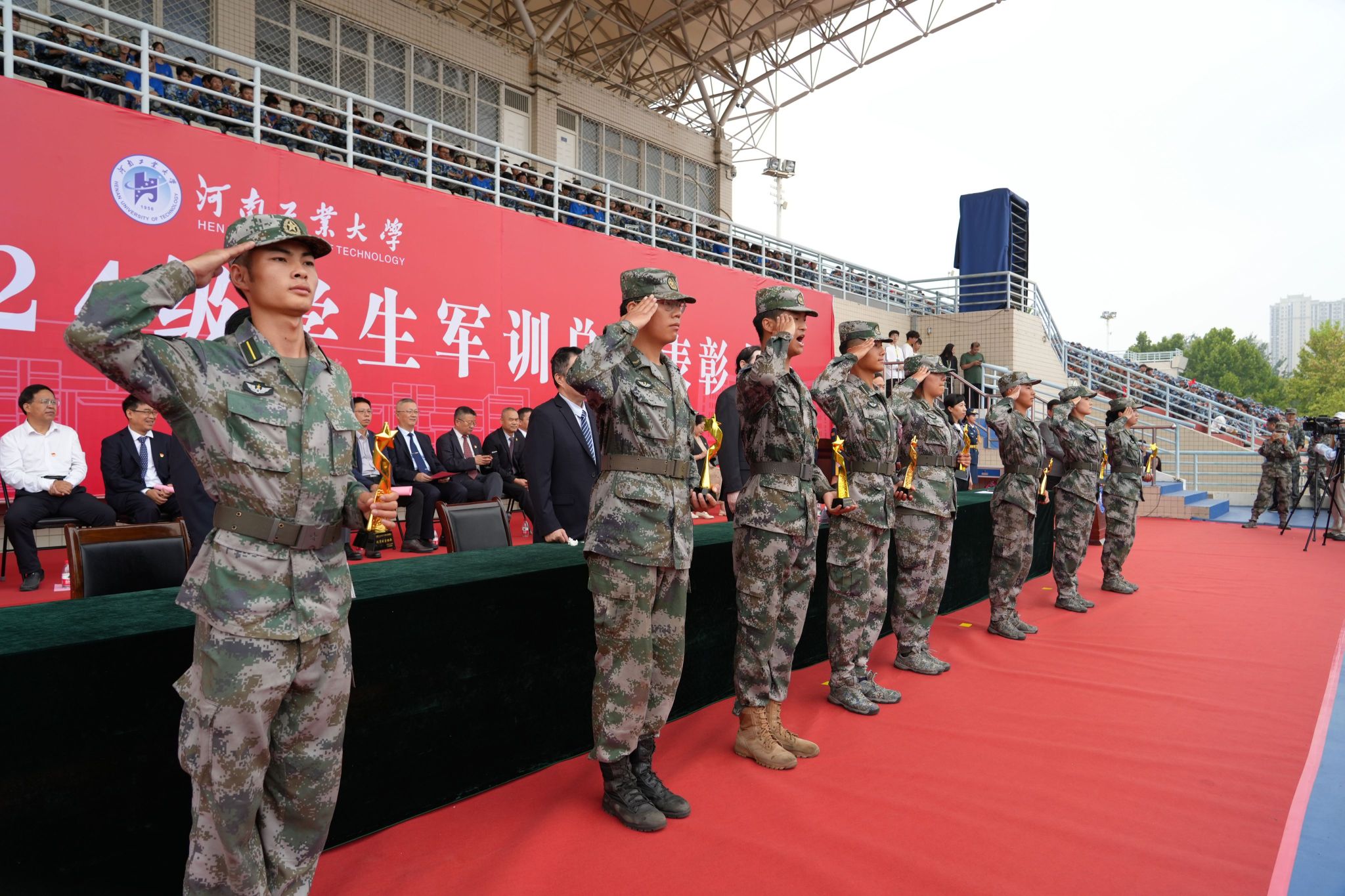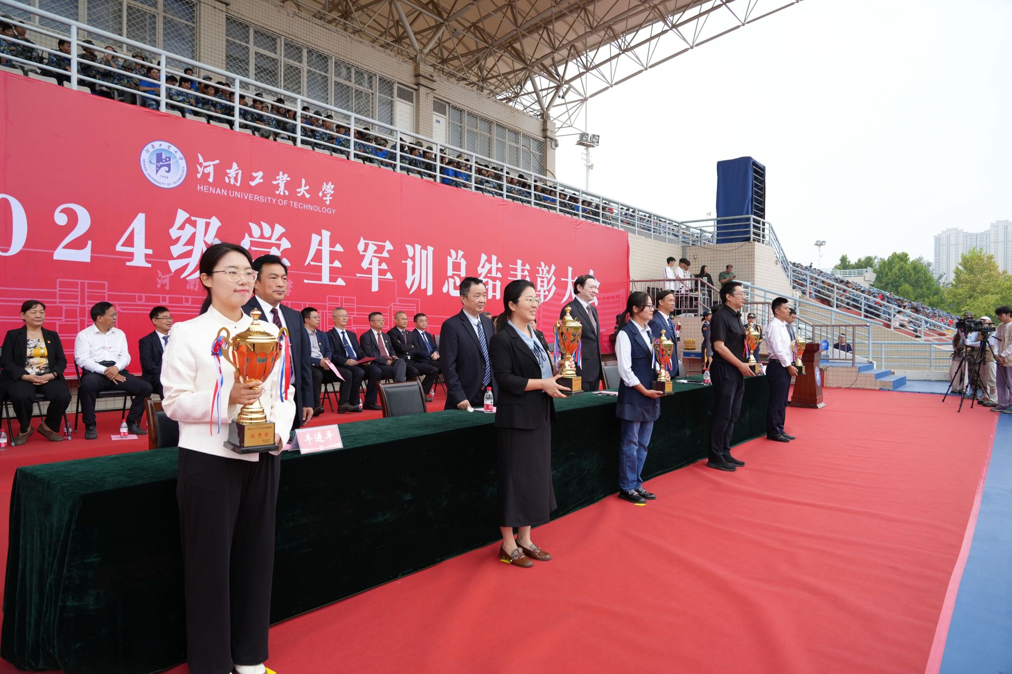 軍訓鑄魂展青春,砥礪奮進譜華章。9月29日上午,我校2024級學生軍訓總結表彰大會分別在嵩山路校區和蓮花街校區隆重舉行。全體校領導、中原區人民武裝部部長楊金波出席表彰大會,各職能部門、各學院(書院)主要負責同志、2024級新生輔導員和班主任代表、軍訓教官、全體2024級新生參加總結表彰大會。學工部部長、武裝部部長王迪和校團委書記高泉分別主持表彰大會。