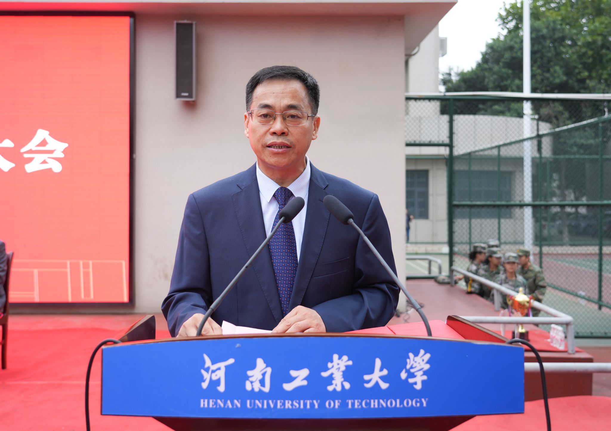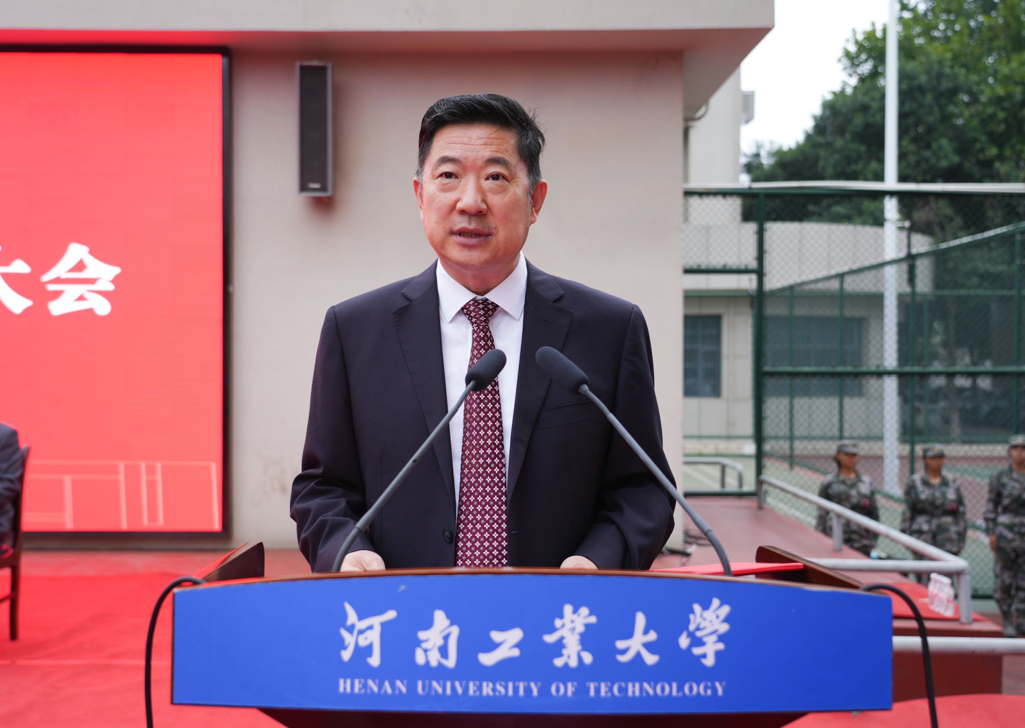 校黨委副書記、工會主席周相寅在嵩山路校區作軍訓總結講話。他強調,組織大學生參與軍訓不僅是大學生踐行兵役義務、深化國防教育不可或缺的一環,更是為國家與軍隊培育大批高素質后備力量的戰略部署,意義深遠,使命光榮。周相寅勉勵廣大青年學子要堅守理想、踐行初心、擔當使命,把個人發展與民族命運緊密聯系在一起,積極投身強軍興國的偉大事業,學真知、悟真理、擔使命、做貢獻,書寫無愧于時代和青春的精彩華章。
