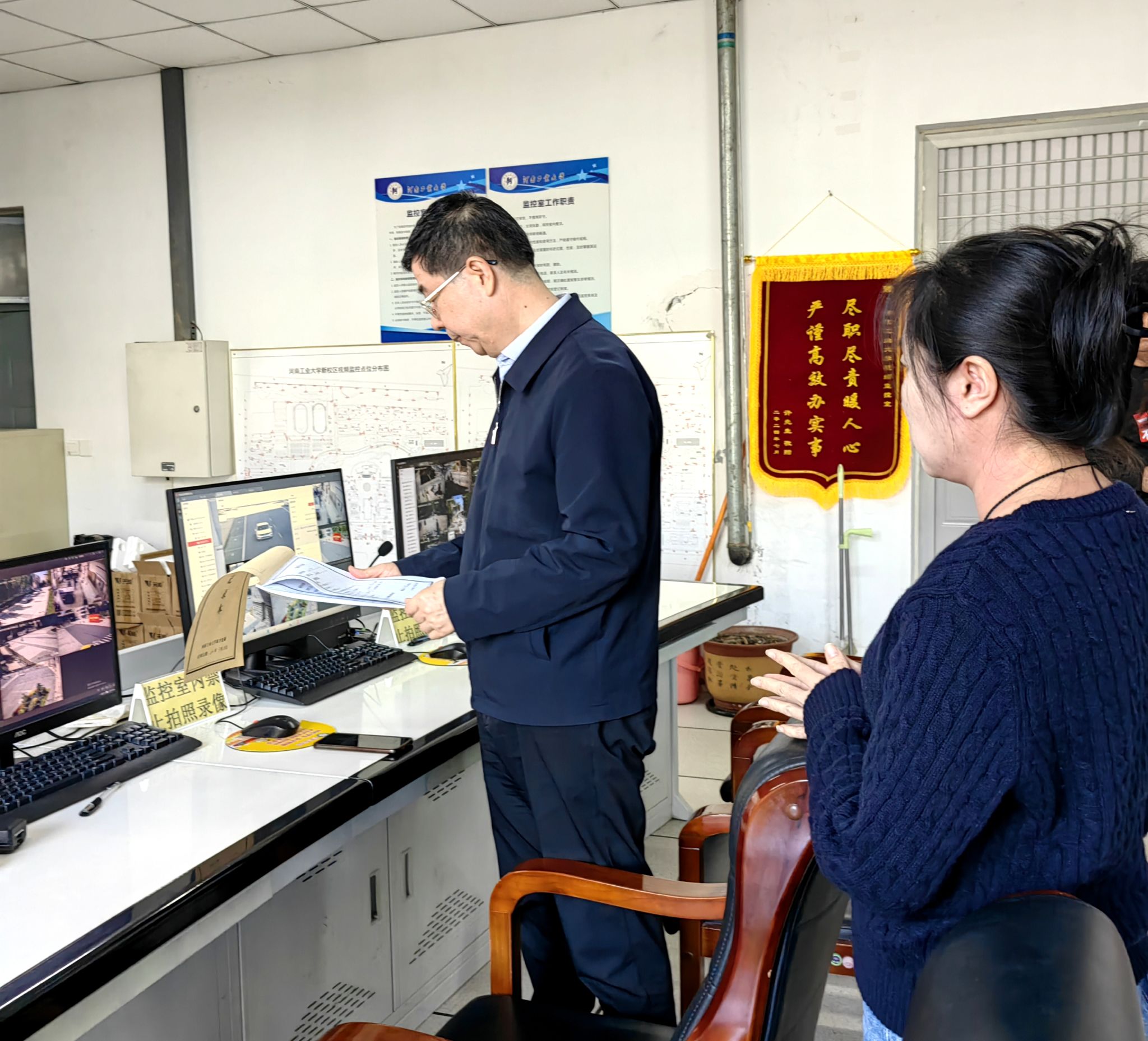 劉志軍先后到學(xué)校總值班室、保衛(wèi)處、視頻監(jiān)控室、消防預(yù)警監(jiān)控室、學(xué)生事務(wù)中心、學(xué)生餐廳、學(xué)生宿舍等地進行走訪檢查,與在崗值班人員和在校學(xué)生進行交流,并表達了節(jié)日問候。