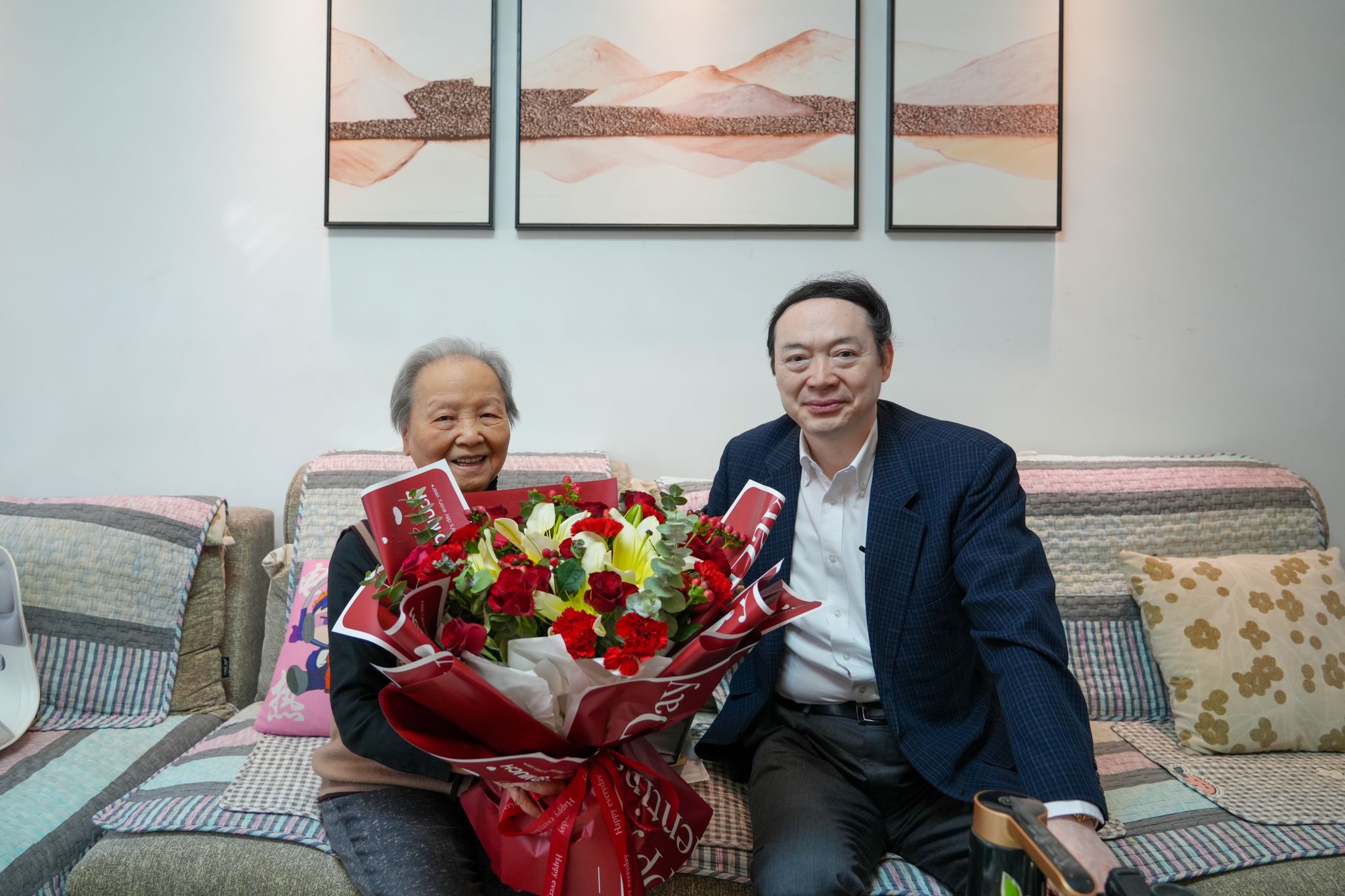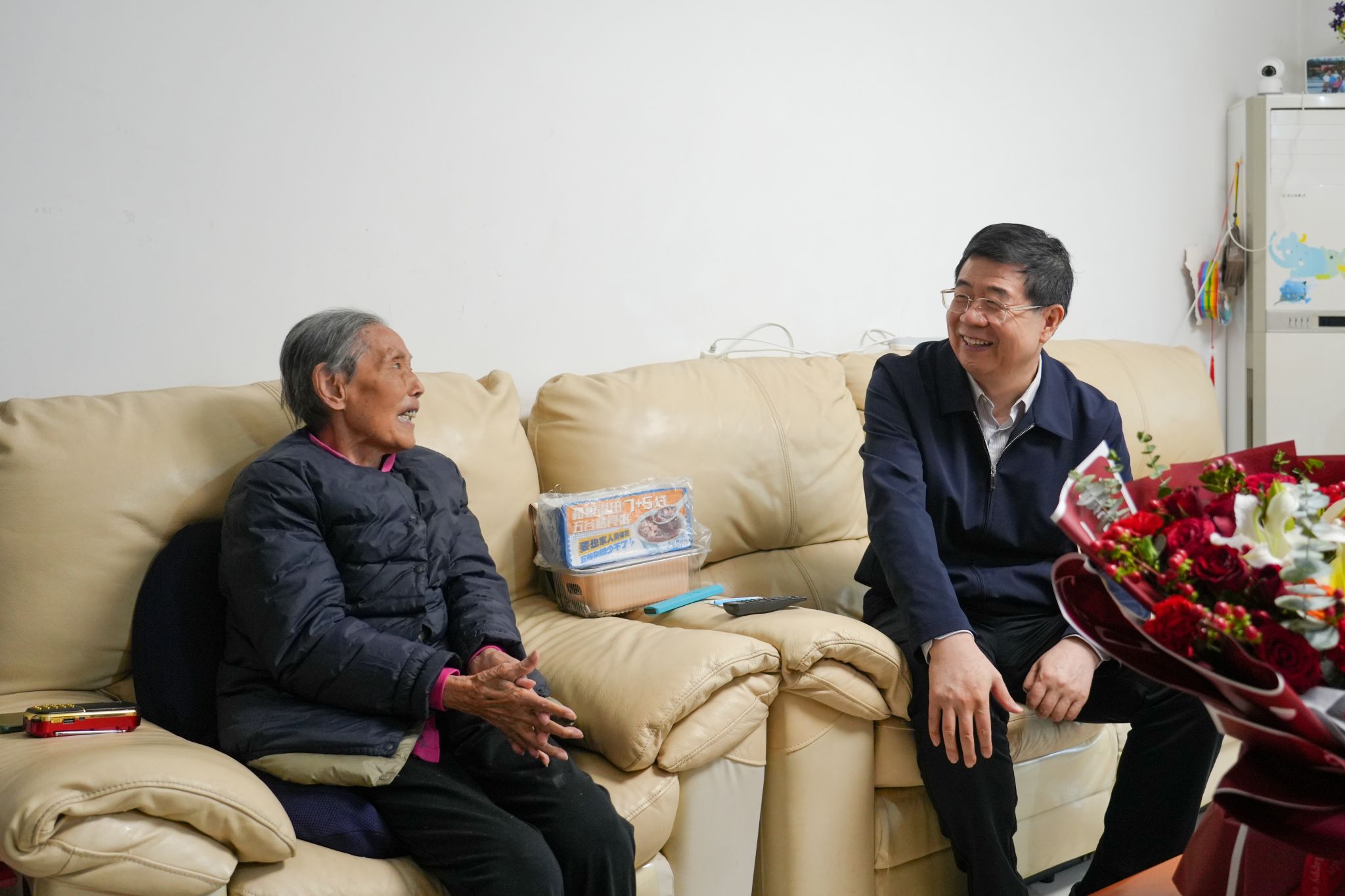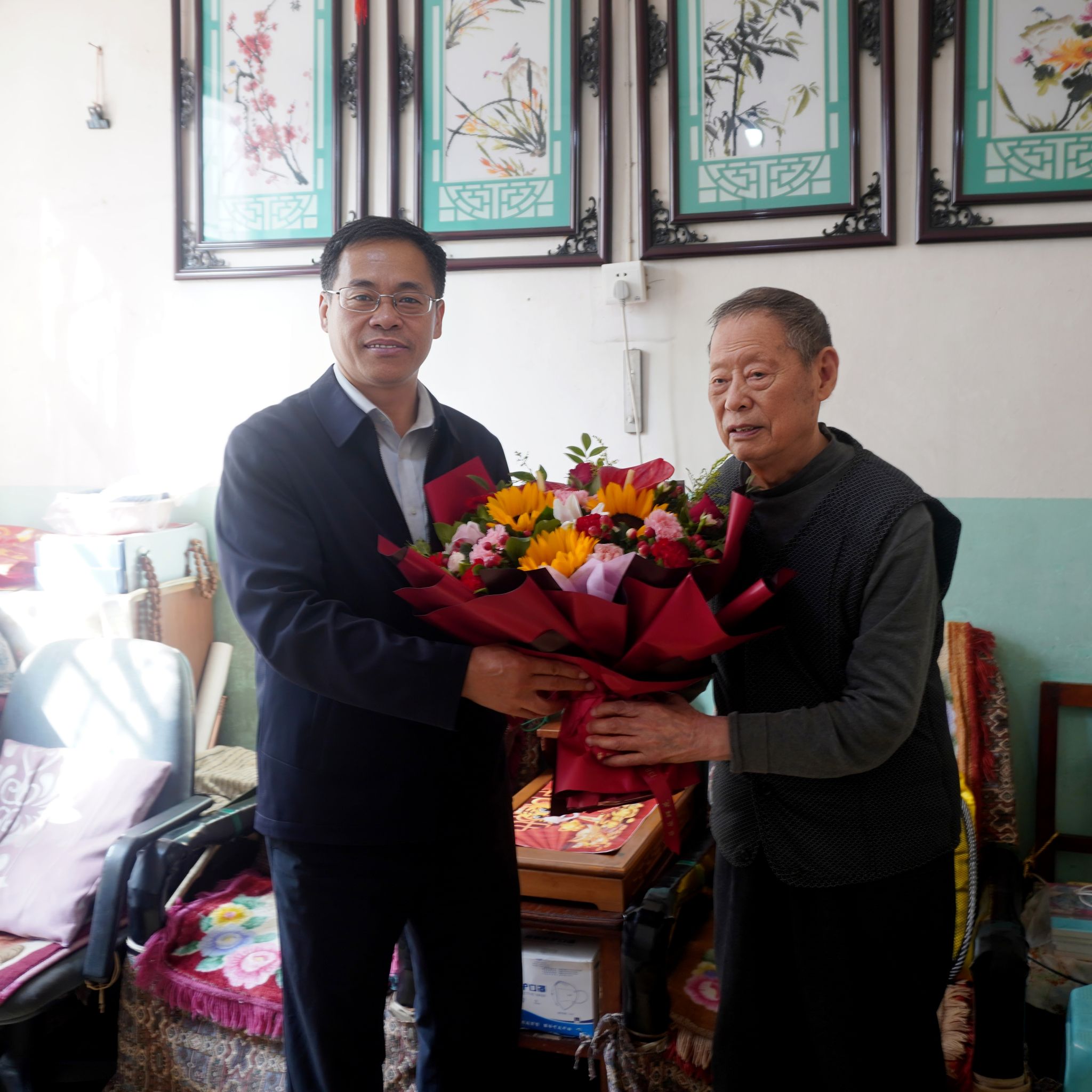 10月10日、11日上午,在重陽佳節來臨之際,為進一步弘揚中華民族傳統美德,營造尊老敬老愛老濃厚氛圍,切實把學校的關心關懷送到老同志心間,確保離退休老同志們共同度過一個歡樂、祥和、健康、文明的重陽佳節,校黨委書記劉志軍,校長吳智深,校黨委副書記、工會主席周相寅在校黨委辦公室、校長辦公室和離退休工作處等部門負責同志陪同下分別到陳淑華、涂天碧、張占祥等三位九十多歲高齡的離退休老同志代表家中看望慰問,并代表學校黨委、行政和全校師生向他們及全體離退休老同志致以誠摯問候和美好祝愿。