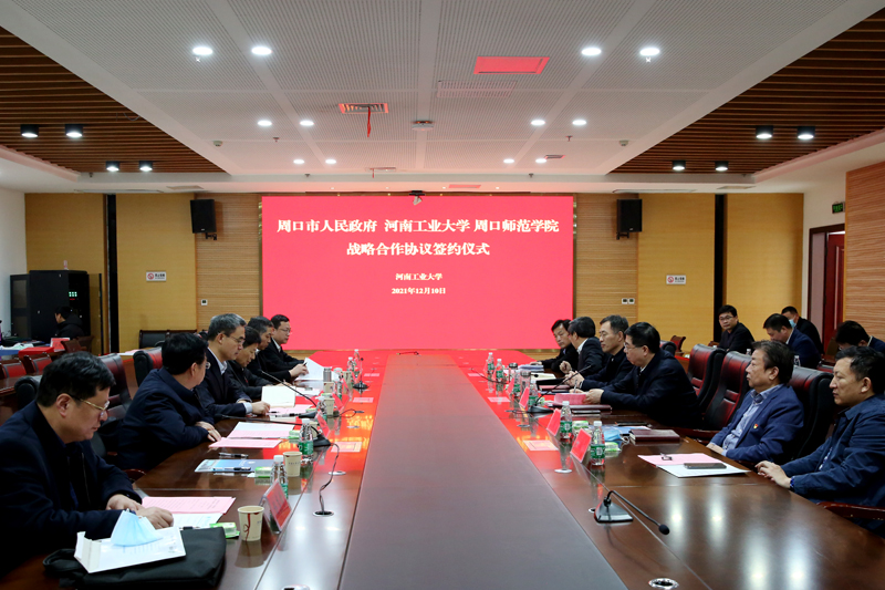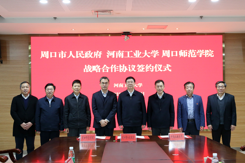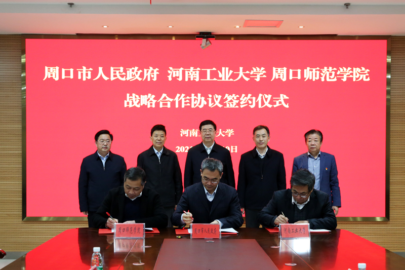 隨后,周口市人民政府副市長秦勝軍、周口師范學院副校長遲彥、河南工業大學副校長陳復生分別代表三方,共同簽訂了三方戰略合作協議。