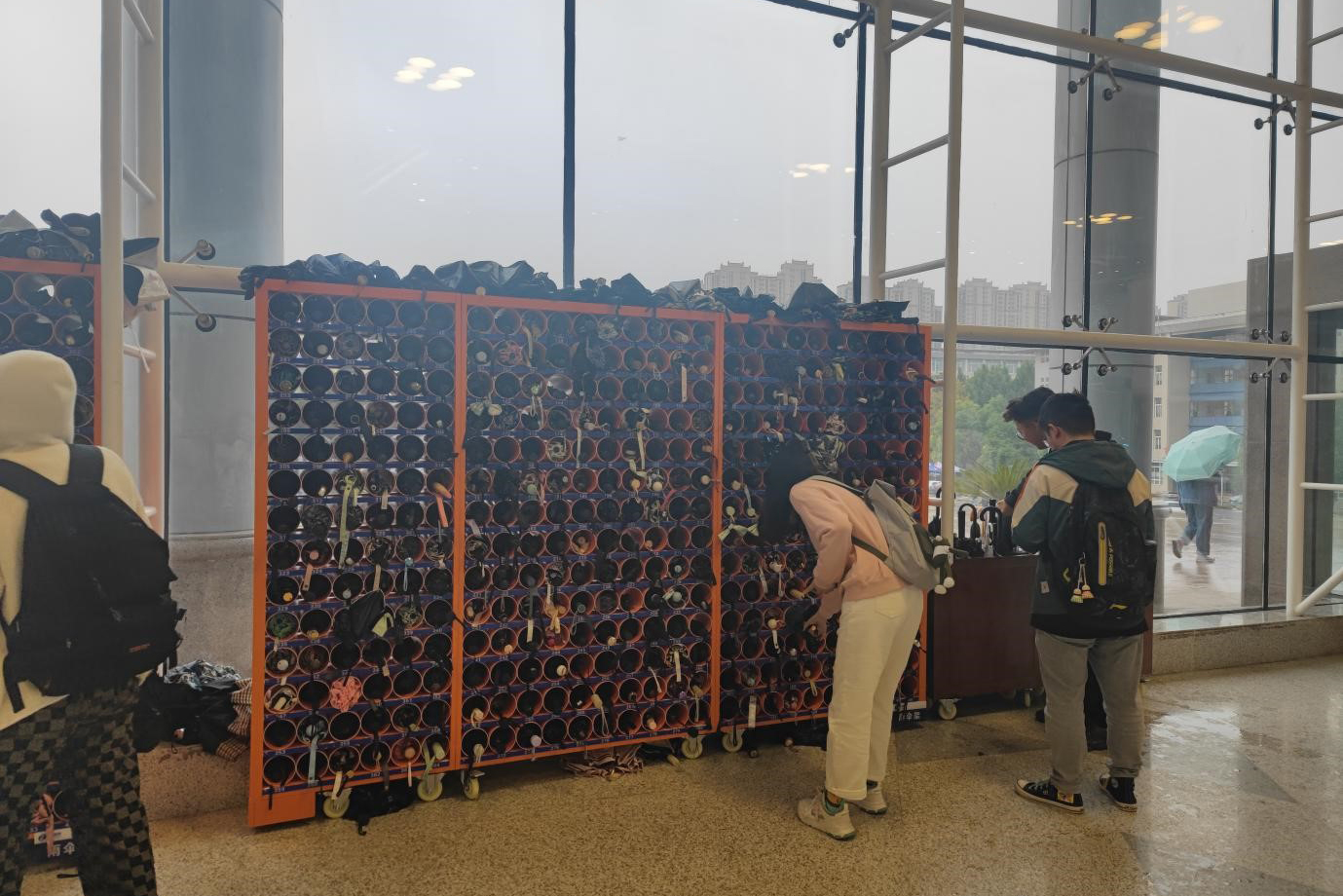 為方便讀者存放個人物品,圖書館引進社會力量,在圖書館各樓層安裝智能存包柜,共1800箱;在二層大廳玻璃幕墻內側安裝特色雨傘墻,可同時放置2000把雨傘。為了保證師生在災情之后能夠飲用到安全水,圖書館專門安裝了十臺飲水機,圖書館值班人員堅守崗位,每天搬運桶裝飲用水數十桶,并進行及時的管理和維護,工作態度端正積極。這一舉動為來館師生的安全提供了很大的保障,在極大程度上溫暖了師生的心。