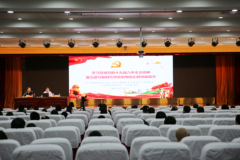 報告會上,羅士喜以《學習貫徹黨的十九屆六中全會精神奮力譜寫新時代中原更加出彩的絢麗篇章》為題,從“深刻認識黨的百年奮斗的初心使命和重大成就”“深刻把握新時代的歷史性成就和歷史性變革”“深刻認識黨的百年奮斗的歷史意義和歷史經驗”“深刻認識以史為鑒、開創未來的重要要求”“貫徹落實六中全會精神和省第十一次黨代會精神、譜寫新時代中原更加出彩的絢麗篇章”五個方面,運用大量史實、生動案例,對黨的十九屆六中全會精神進行了系統闡述和深刻解讀。他強調,要深入學習宣傳貫徹習近平總書記重要講話精神和黨的十九屆六中全會精神,要與學習貫徹省第十一次黨代會精神結合起來,堅持從黨的百年奮斗歷程中汲取智慧和力量,在大有作為的新時代書寫好河南高等教育改革發展“奮進之筆”,為全面建設社會主義現代化河南新征程、奮力譜寫新時代中原更加出彩絢麗篇章,走好新時代趕考之路。