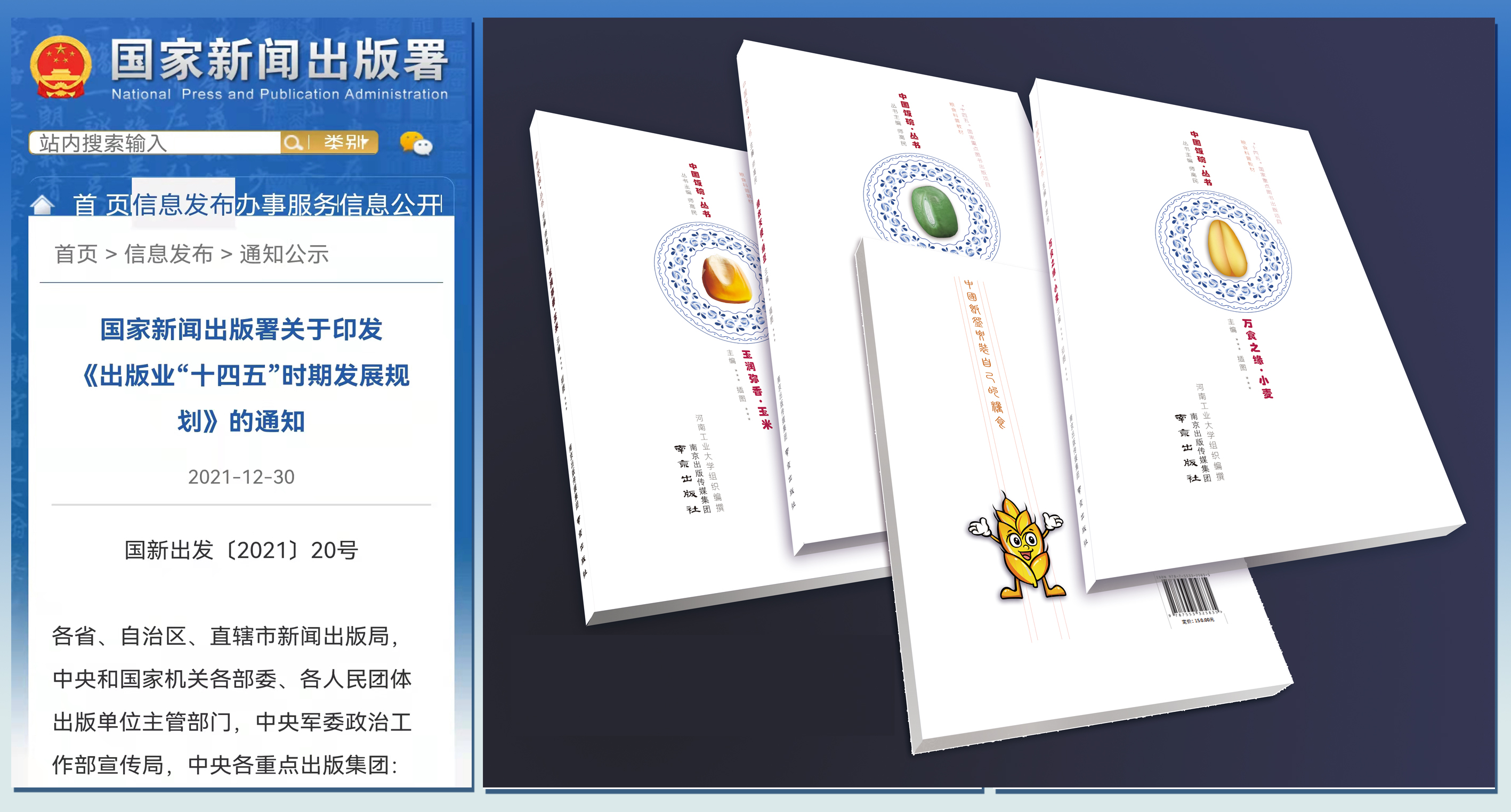 國家科學編制和有效實施“十四五”時期國家重點出版物出版專項規劃,對進一步提高精品出版能力,建成社會主義文化強國、出版強國具有重要意義。國家每五年約出版220多萬種圖書,“十四五”時期國家重點出版物出版專項規劃首次遴選的規劃項目共1929個,其中圖書項目包括習近平總書記重要著作四部共1753個,《中國飯碗》是其中之一,還有音像電子出版物項目176個。國家重點圖書遴選比例為總出版種數的千分之一不到。列入規劃項目的出版物,可在封面、扉頁或其他適當位置標注:“十四五時期國家重點出版物出版專項規劃項目”字樣。規劃實行動態管理,進行優勝劣汰,以保證規劃出版物的國家級最高水平。