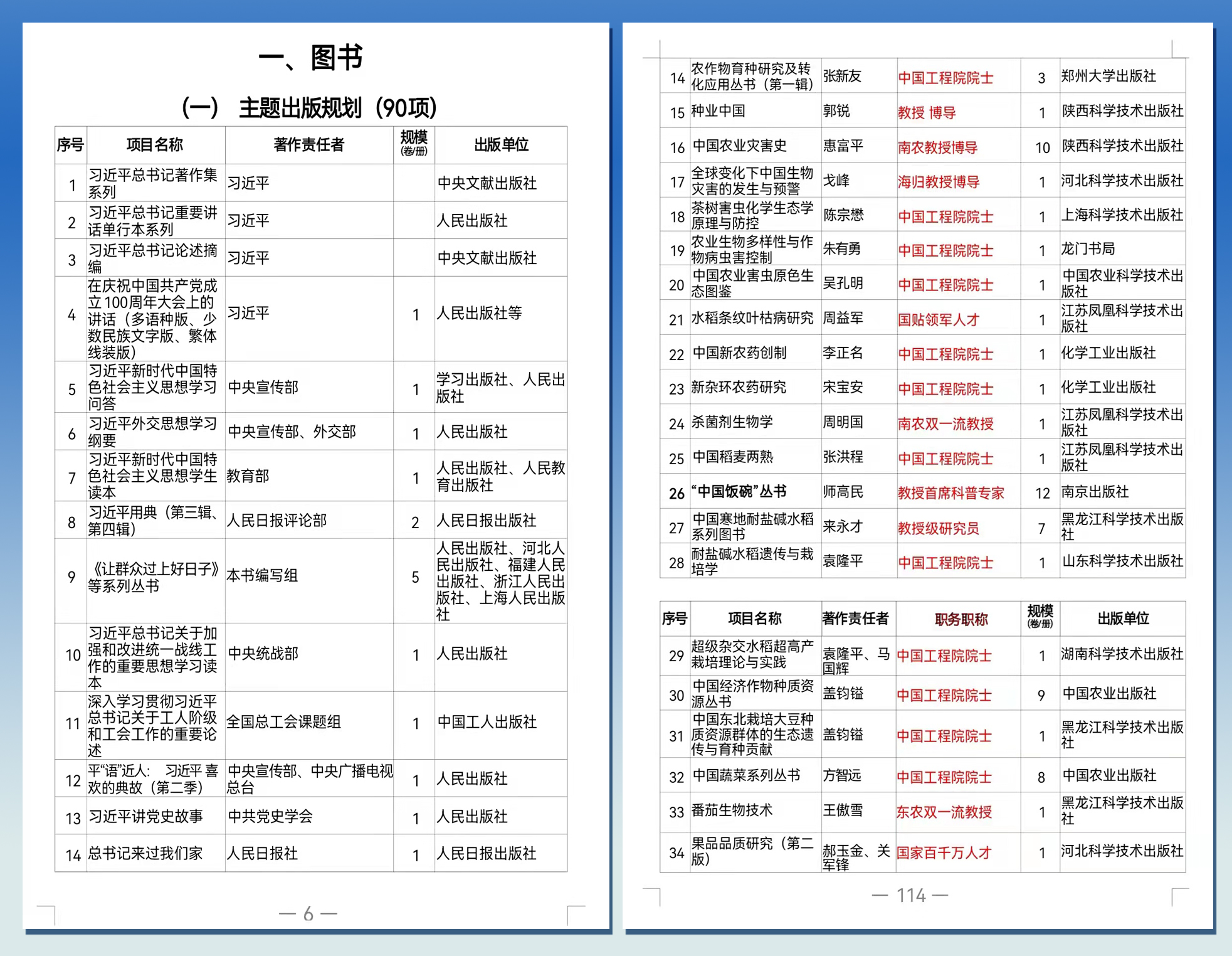 本次入選“規劃”的農業科學類國家重點圖書共43種,其作者多是兩院院士、國家級專家,水平很高,實力強悍。我校《中國飯碗》編撰項目進入首批“十四五規劃”,為我校科研上臺階,爭得話語權,擴大影響力作出了突出貢獻。