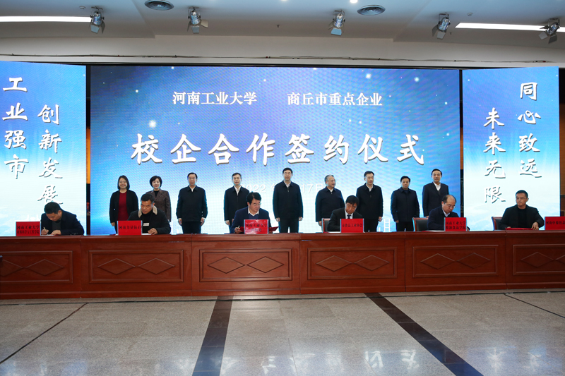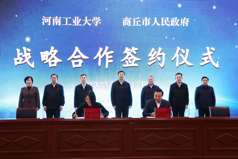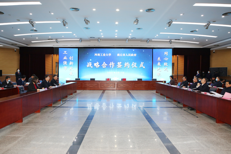 2月17日,河南工業大學與商丘市人民政府戰略合作協議簽約儀式在商丘市舉行,校地雙方將在貫通產學研用、促進成果轉化等方面開展深入合作,并就共建河南工業大學商丘產業技術研究院進行了深入交流研討。學校黨委書記劉志軍、校長李成偉、副校長陳桂香、校有關院處負責人,商丘市委書記李國勝、市長擺向陽等市領導出席簽約儀式。擺向陽主持會議,李國勝、劉志軍致辭。