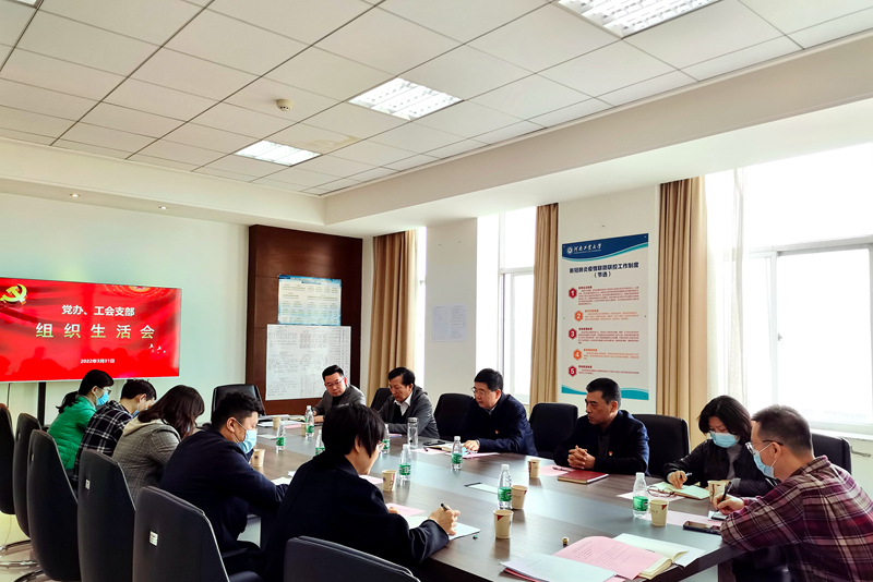 3月31日下午,機關黨委黨辦工會黨支部在行政樓A709會議室召開黨員大會暨2021年度組織生活會,進行集中學習,開展民主評議、批評和自我批評。學校黨委書記劉志軍同志以普通黨員身份參加。會議由支部書記朱立峰主持。