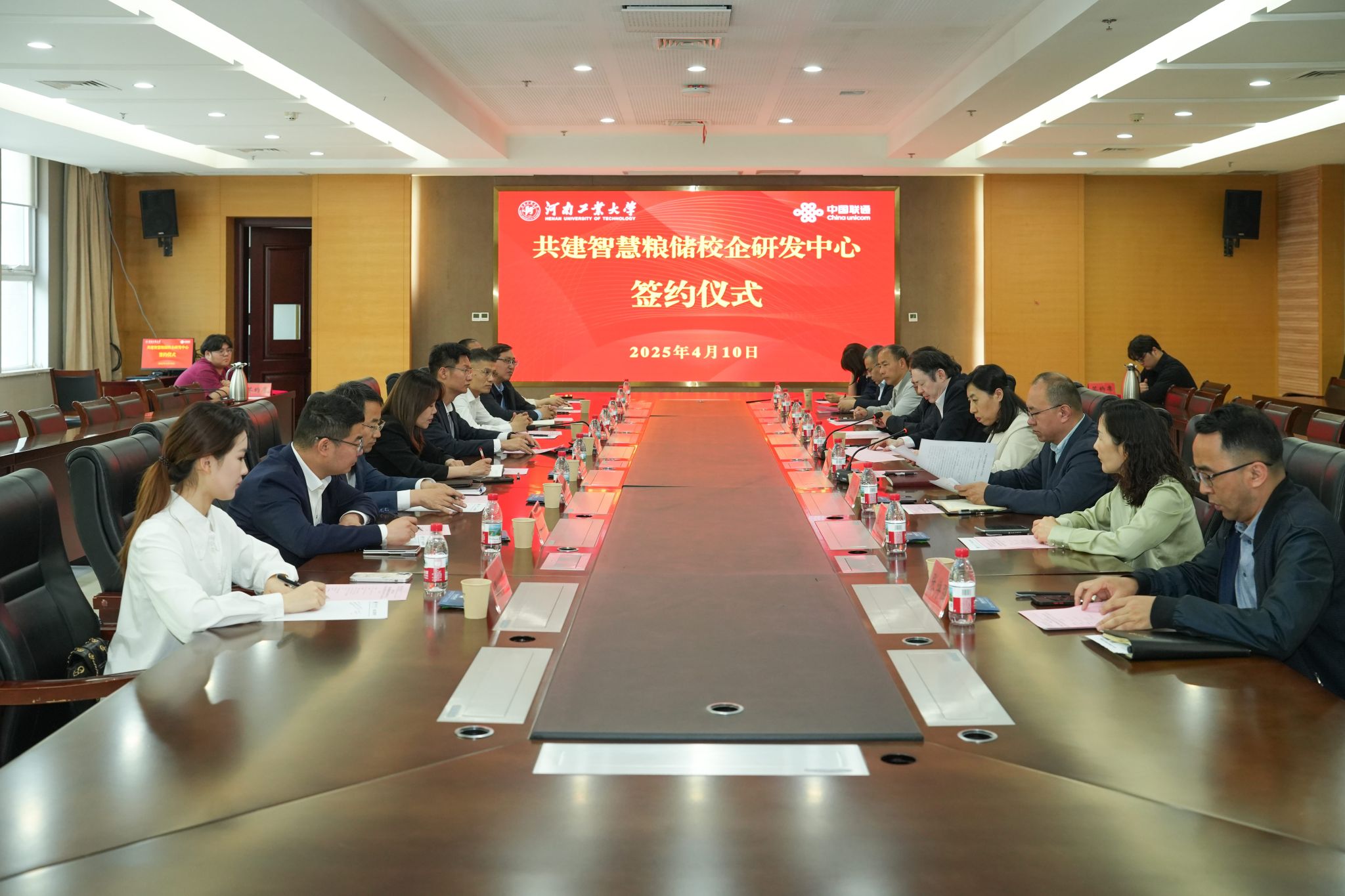 為貫徹落實國家糧食安全戰略,推動產教融合創新發展,4月10日下午,河南工業大學與中國聯通鄭州市分公司共建“智慧糧儲校企研發中心”簽約儀式在學術報告中心D203會議室舉行。校長吳智深、副校長白艷紅,以及校長辦公室、科技處、產業技術研究院、信息化辦公室、機電工程學院等部門負責人出席儀式;中國聯通鄭州市分公司黨委書記、總經理瞿群偉,副總經理吳慶虎及業務部門負責人參加簽約儀式。儀式由副校長白艷紅主持。