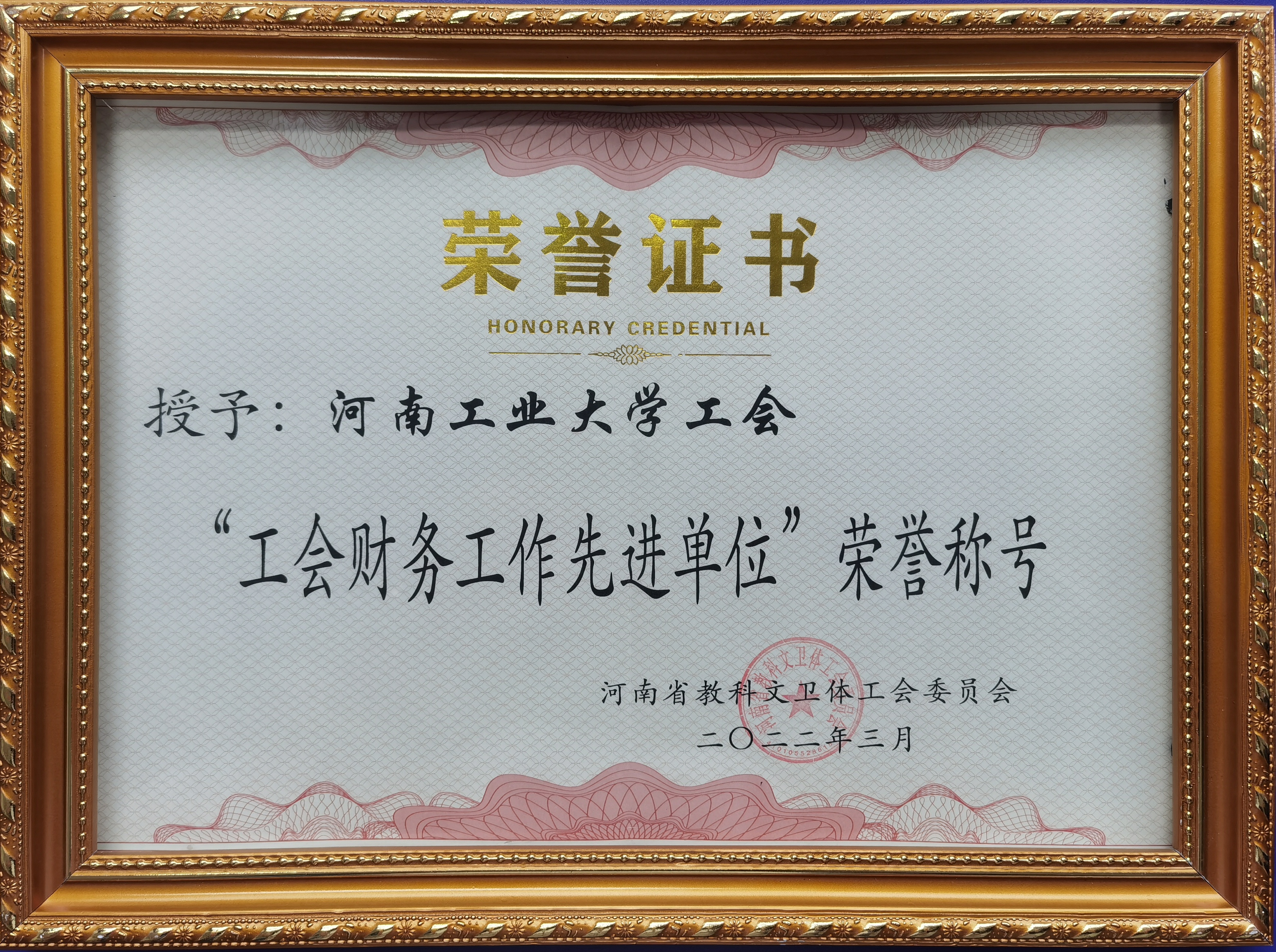 近日,河南省教科文衛(wèi)體工會印發(fā)《關于表彰2021年度先進集體和先進個人的決定》(豫教科文衛(wèi)體工[2022]5號),我校工會被授予“工會工作先進單位”,同時還獲得“工會財務工作先進單位”稱號。圖書館采編部和經(jīng)濟貿(mào)易學院金融學系榮獲“女職工建功立業(yè)先進集體”稱號,生物工程學院張璐等5名教職工榮獲先進個人榮譽稱號。