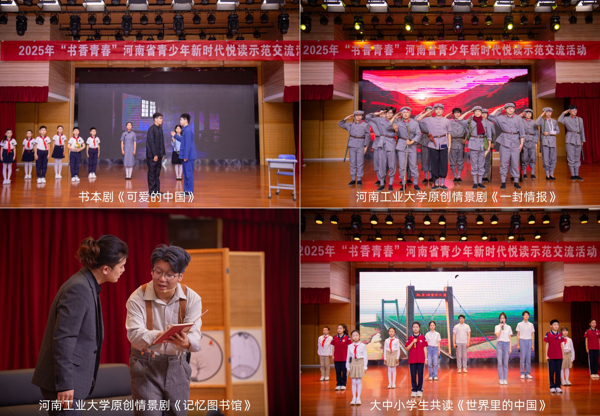 鄭州市管城回族區(qū)銀鶯路小學少先隊員們精彩演繹的書本劇《可愛的中國》生動地展現(xiàn)了革命先輩的愛國情懷;省“青馬工程”學員、河南工業(yè)大學學生李遠宏分享了閱讀《習近平與大學生朋友們》的體會,引發(fā)在場青少年學生的共鳴;河南工業(yè)大學原創(chuàng)情景劇《一封情報》以獨特視角展現(xiàn)了革命故事,讓觀眾深刻感受到革命先輩的英勇無畏;公益閱讀推廣人李紅春分享了自己的閱讀感悟,鼓勵大家在閱讀中實現(xiàn)自我提升;河南工業(yè)大學原創(chuàng)情景劇《記憶圖書館》,通過新穎的形式傳遞了深刻的文化內涵。此外,中國青少年新媒體協(xié)會閆光宇對個人關于讀書學習的思考進行分享,為青少年閱讀提供了新的思路與方法。