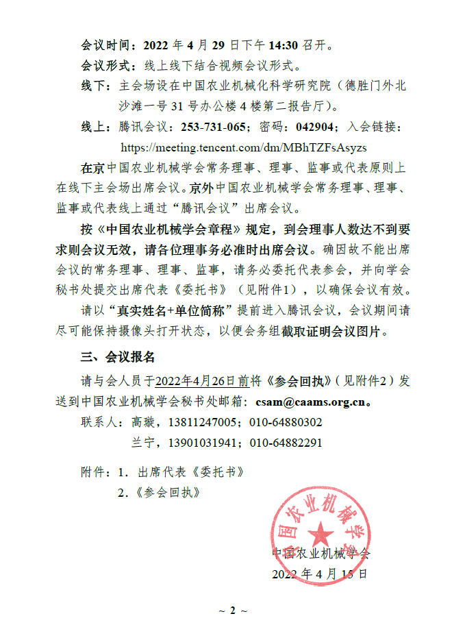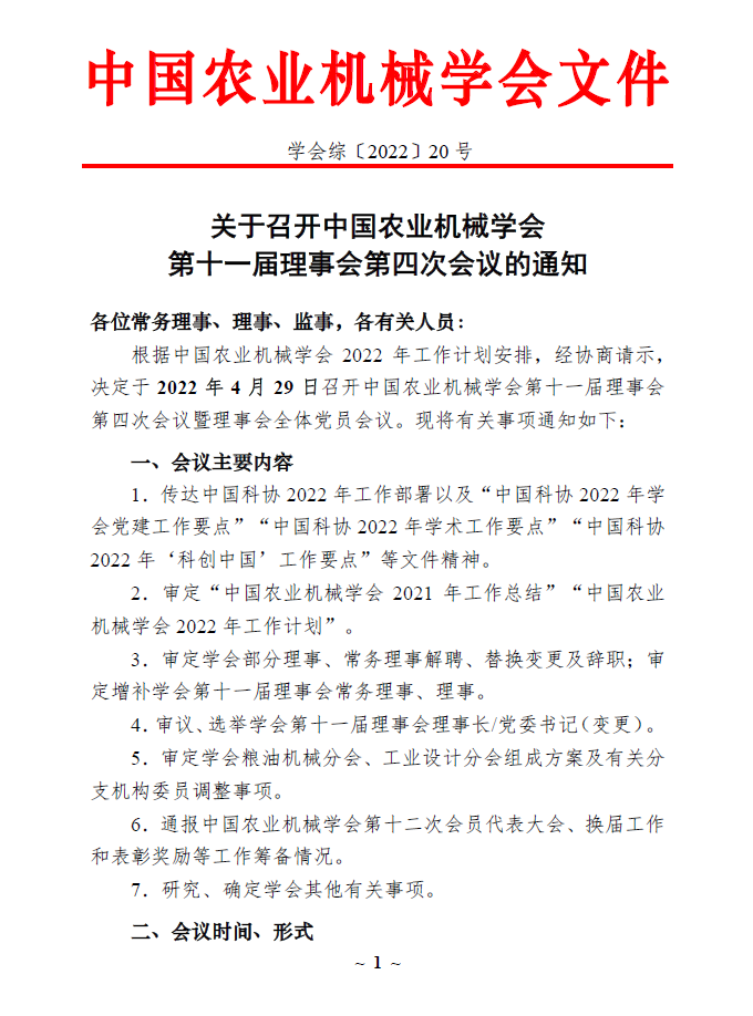附:中國農業機械學會(Chinese Society for Agricultural Machinery,CSAM),成立于1963年3月,是中國科學技術協會所屬全國學會,是我國農業機械和工程領域科技工作者及相關單位自愿組成的全國性、非營利性社會團體,掛靠在中國農業機械化科學研究院。