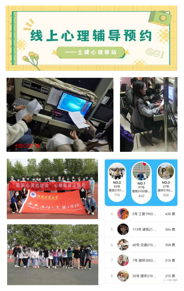 為了在抗疫形勢下更好的開展心理輔導工作,讓同學們獲得一個抒發自己情感,分享生活中的美麗風景,美好事跡,互相之間交流感情的平臺,土木工程學院心理輔導站微信公眾號“土建心理驛站”創建運營,為同學們提供心理測評、心理線上輔導、預約線下輔導、心理知識分享及心理解壓小游戲等功能,讓同學們了解心理、關注自我,幫助其更好解決心理問題,擁有健康向上的心態,更好地應對挫折和逆境。