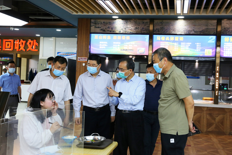 5月23日上午,省委教育工委專職副書記尹洪斌一行到校督導檢查疫情防控工作。校黨委書記劉志軍、黨委副書記李學雷及相關單位負責人陪同。