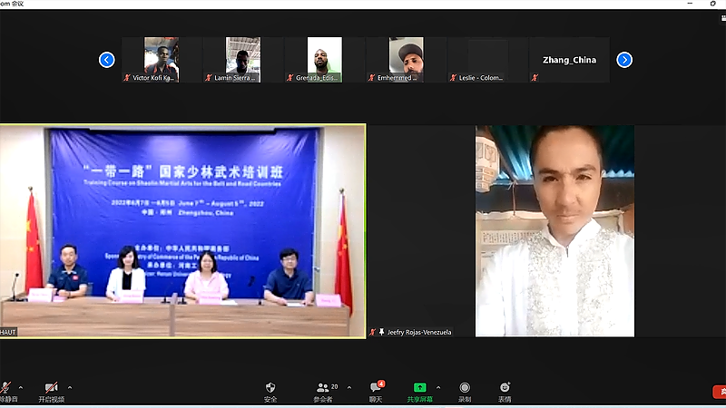 6月9日,由中華人民共和國商務部主辦、河南工業大學承辦的“一帶一路”國家少林武術培訓班在河南省對外援助培訓中心順利開班。河南省商務廳外經處副處長楊軍岐,河南工業大學副校長陳桂香、體育學院副院長王放、國際交流與合作處副處長張小鷗以及來自17個國家的54位學員共同參加了開班儀式。儀式由河南省對外援助培訓中心執行主任張翼主持。