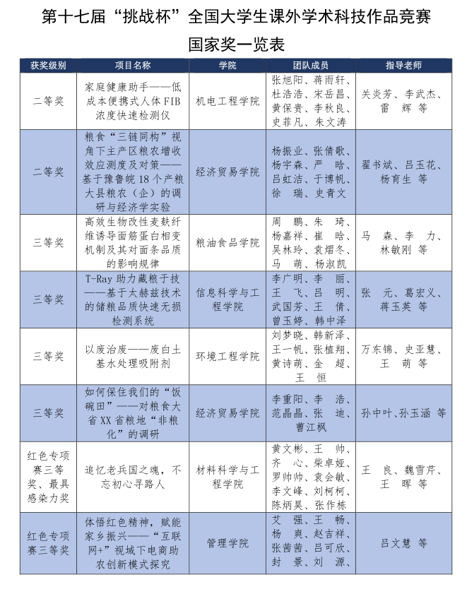 據(jù)統(tǒng)計,此次大賽我校國家獎數(shù)量在省內(nèi)本科高校名列前茅。“挑戰(zhàn)杯主體賽”國家獎占全省本科高校的16%,其中二等獎以上獲獎占全省22%。