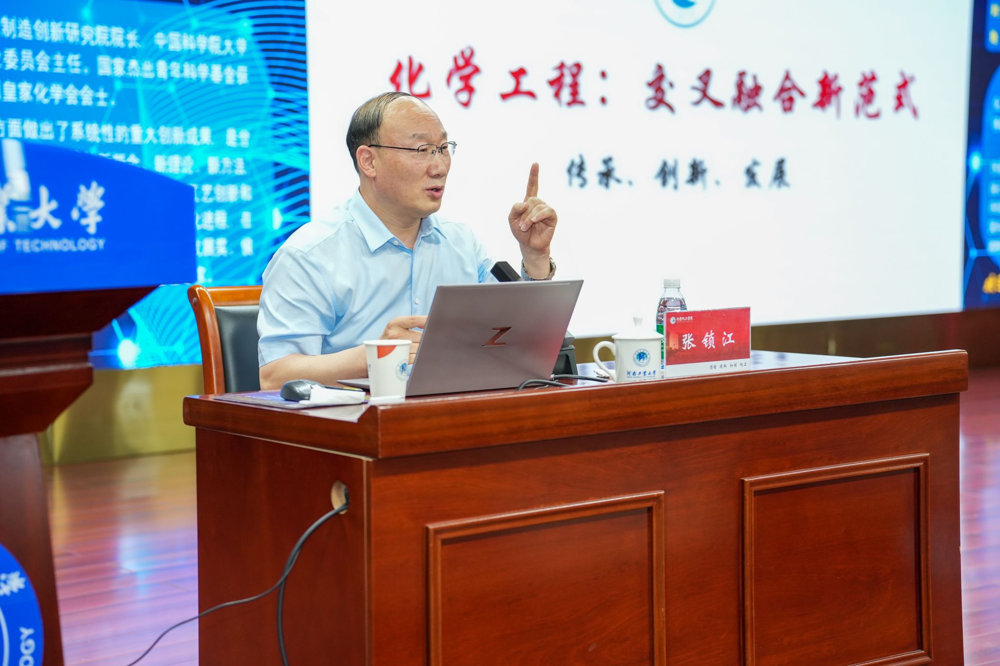 報(bào)告會上,張鎖江院士主要圍繞化工科研發(fā)展與大學(xué)教育變革兩大方面展開分享。在化工科研發(fā)展領(lǐng)域,他指出化學(xué)工程的未來在于與多學(xué)科的深度交叉融合,并以四點(diǎn)為例進(jìn)行了具體闡釋:一是化工與AI融合探索流程逆向設(shè)計(jì);二是化工與能源結(jié)合催生鋰漿料規(guī)模儲能變革性技術(shù);三是化工與電子信息領(lǐng)域結(jié)合在芯片冷卻等技術(shù)上實(shí)現(xiàn)突破;四是化工與生命科學(xué)結(jié)合探索離子液體遞送強(qiáng)化靶向治療。在大學(xué)教育變革方面,他強(qiáng)調(diào)大學(xué)教育需從“指標(biāo)驅(qū)動”轉(zhuǎn)向“使命驅(qū)動”,通過“2+2+N”教學(xué)改革、強(qiáng)化產(chǎn)學(xué)研合作等方式,培養(yǎng)具備創(chuàng)新能力的復(fù)合型人才。同時(shí),張?jiān)菏考顜熒圆蛔兊目蒲谐跣呐c創(chuàng)新能力,應(yīng)對多變的時(shí)代需求,在學(xué)科交叉中開拓化工發(fā)展新范式。