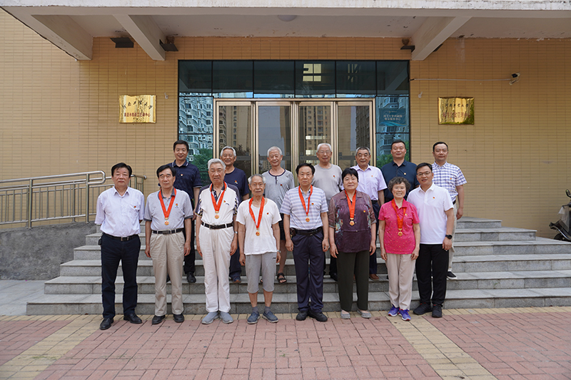 會(huì)議結(jié)束后,參會(huì)校領(lǐng)導(dǎo)與老黨員們集體合影留念。離退休處在近期,針對(duì)行動(dòng)不便、不能到場(chǎng)的老黨員,采取上門頒發(fā)紀(jì)念章的形式,保證“光榮在黨50年”紀(jì)念章發(fā)放到位。